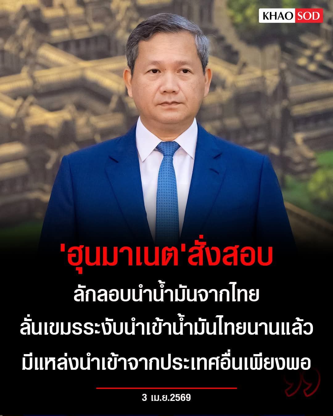 ฮุน มาเนต เย้ย กัมพูชาไม่ได้ซื้อน้ำมันจากประเทศไทยนานแล้ว ตั้งแต่ปี68 น้ำมันมันที่ใช้อยู่ในประเทศตอนนี้ นำเข้าจากประเทศอื่น ซึ่งมีเพียงพอ ไม่ขาดแคลน ใครนำเข้าน้ำมันจากไทย ถือว่ามีความผิด