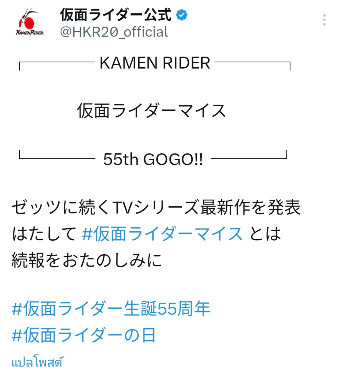 นี่คือมาสค์ไรเดอร์/คาเมนไรเดอร์ ภาคใหม่ ประจำปี 2026 ต่อจากเซทซ์ ชื่อ ไมธ์ (MY-TH/マイス)