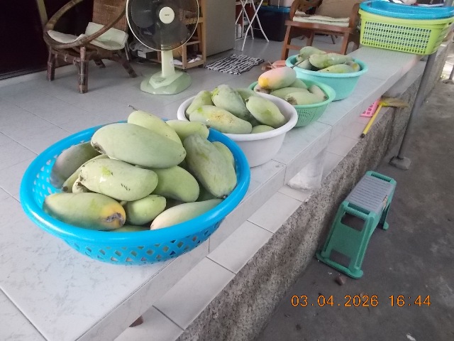 ไม่ได้การละ เดี๋ยวกระเบื้องหลังคาแตก ก็เลยต้องปีนไปตัดกิ่ง + เก็บคุณมะม่วงทั้งหลาย ที่รุมเคาะหลังคาอยู่นั่นแหละ