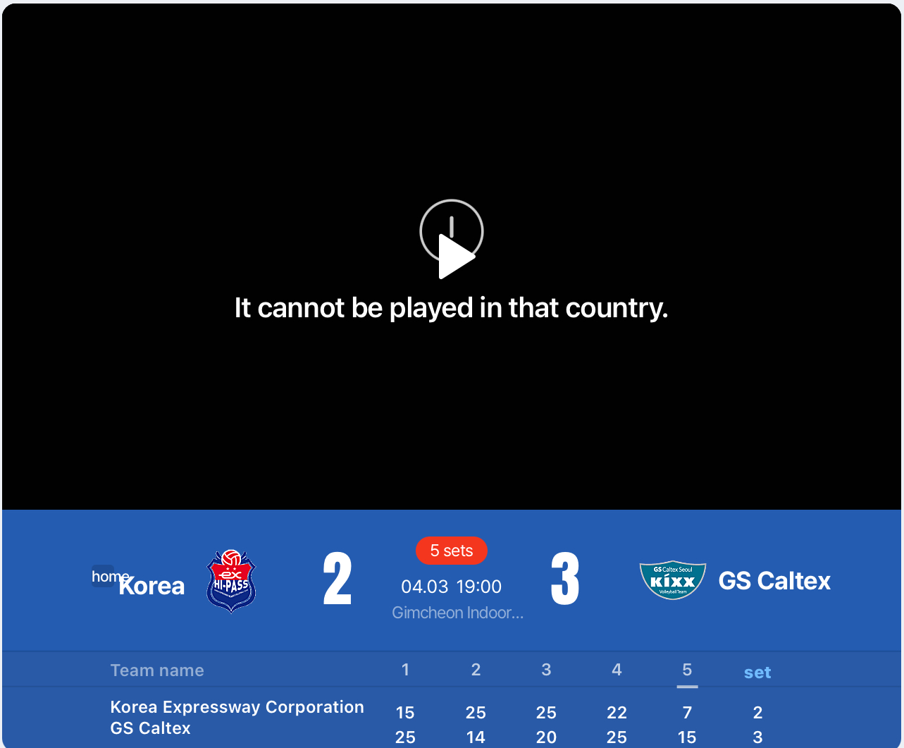 Gimcheon Korea Expressway Hi-Pass 2-3 GS Caltex Seoul KIXX (15-25 25-14 25-20 22-25 7-15)