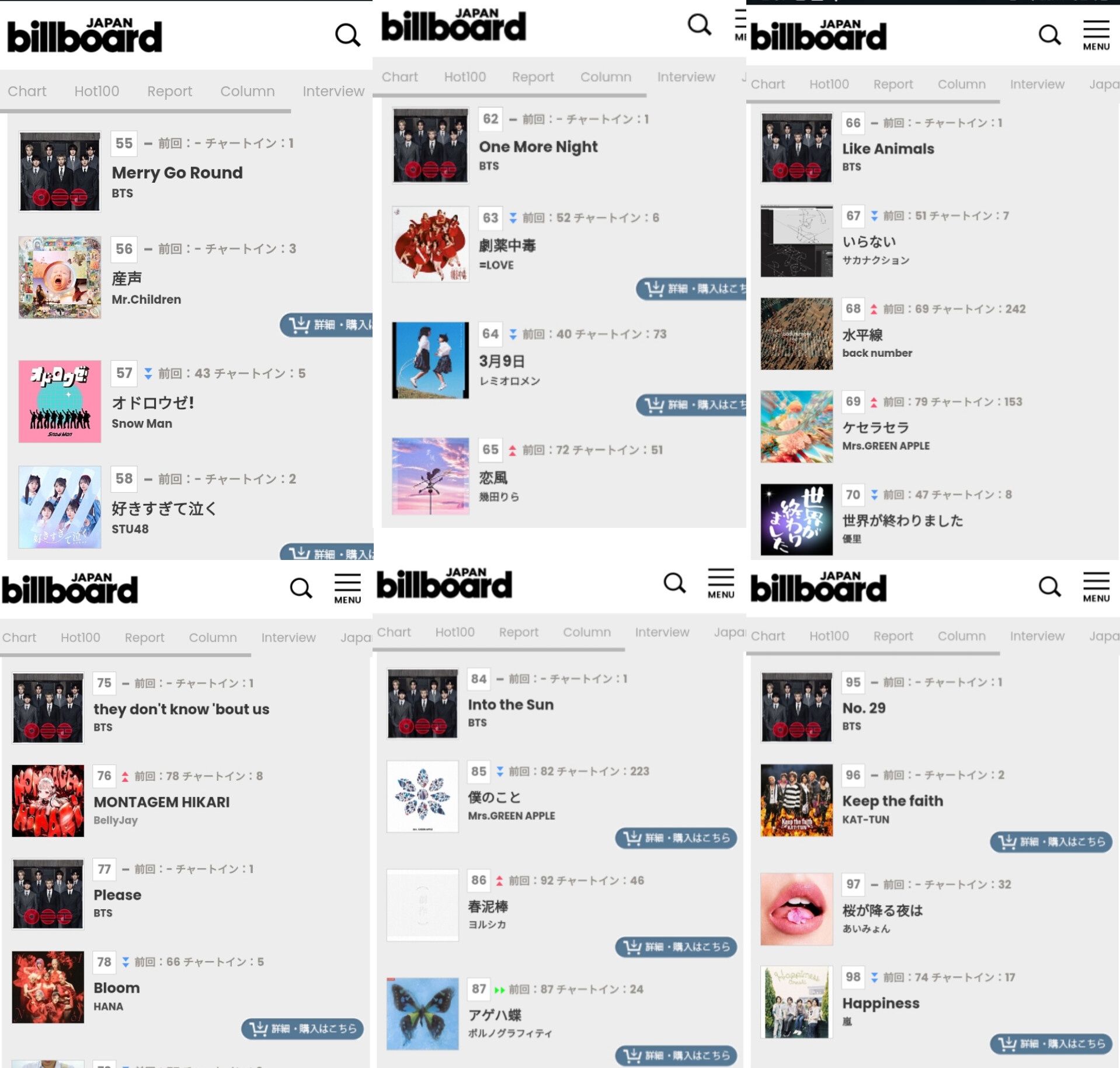 BTS เป็นศิลปินต่างชาติรายแรกในประวัติศาสตร์ที่พาเพลงทั้งอัลบั้ม (14 เพลง) เข้าชาร์ต Billboard Japan Hot 100 ได้หมด