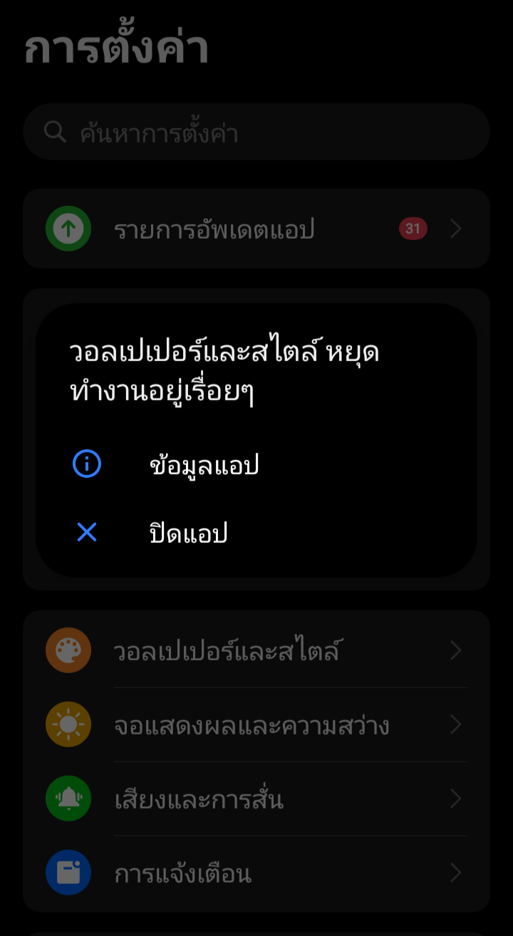 วอลเปเปอร์ และสไตล์หยุดทำงาน สามารถแก้ไขได้อย่างไรบ้างคะ??