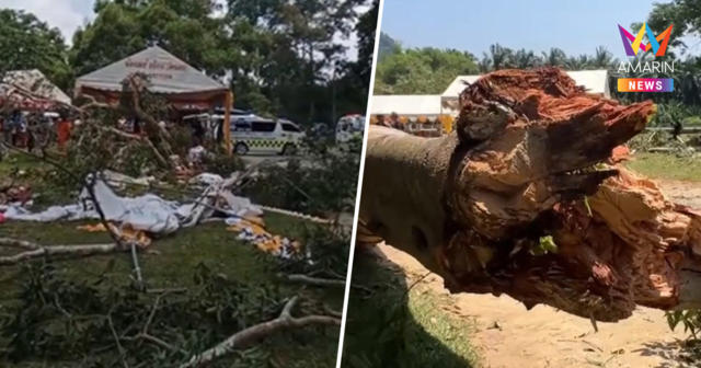 สลดงานวัดชุมพร! ต้นไม้ใหญ่บนเขาหักโค่นทับเต็นท์พิธีสวดมนต์ ดับ 2 เจ็บ 8