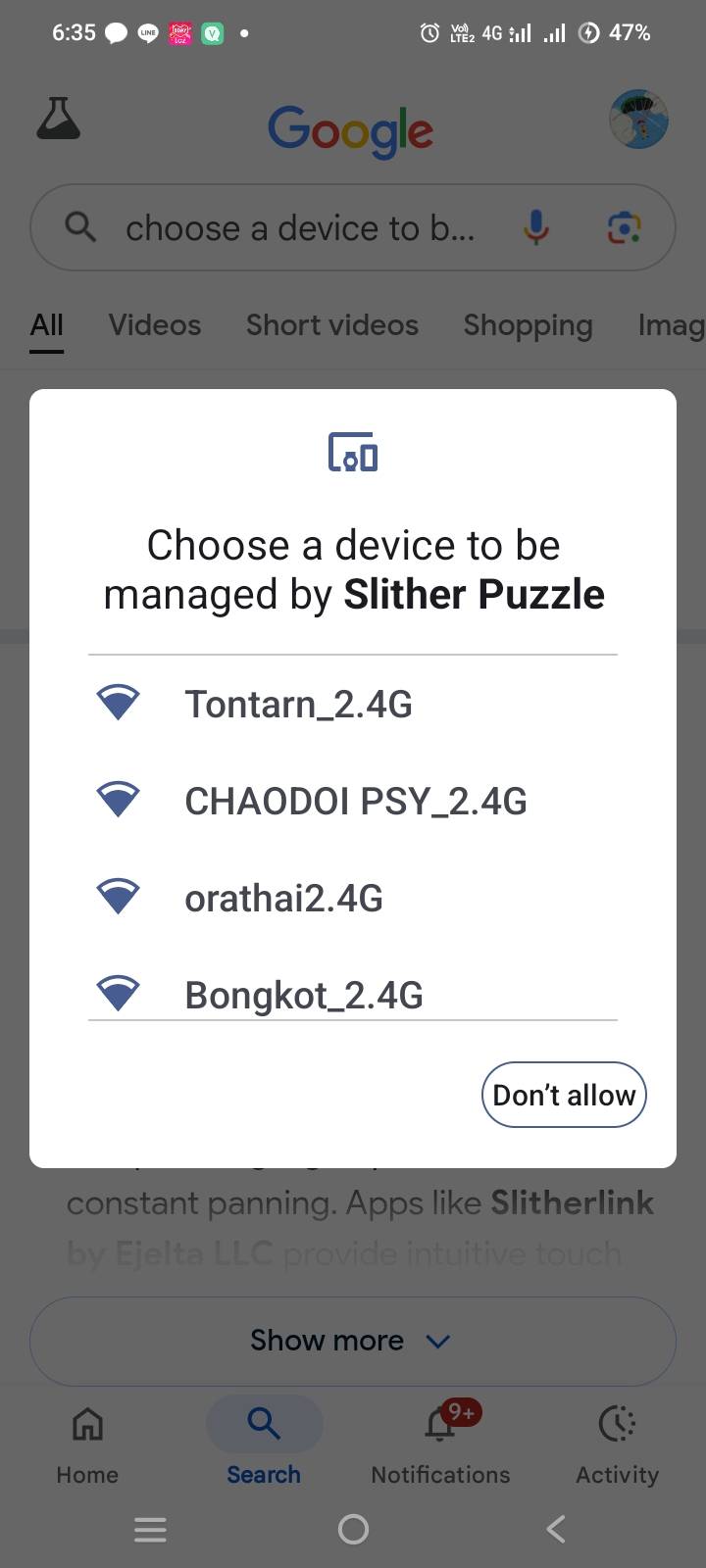 Choose a device to be managed by slither puzzle