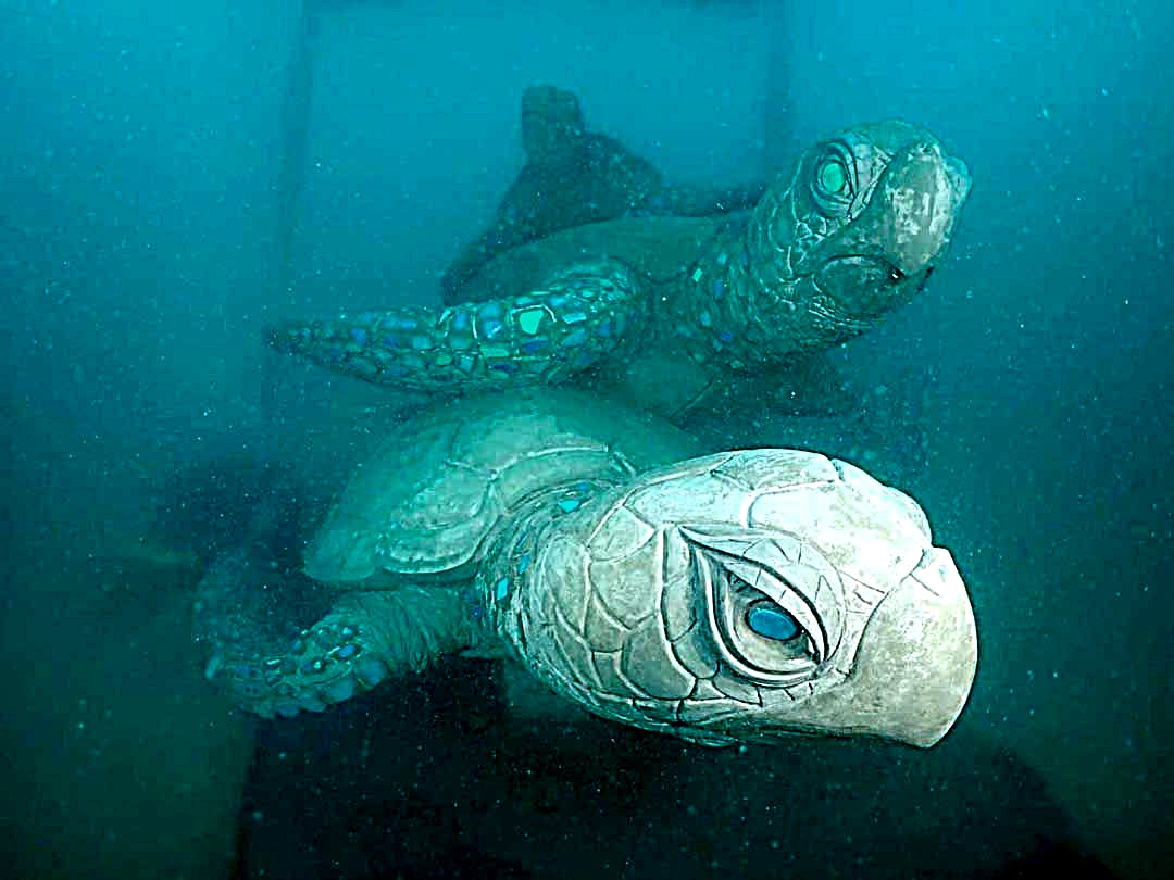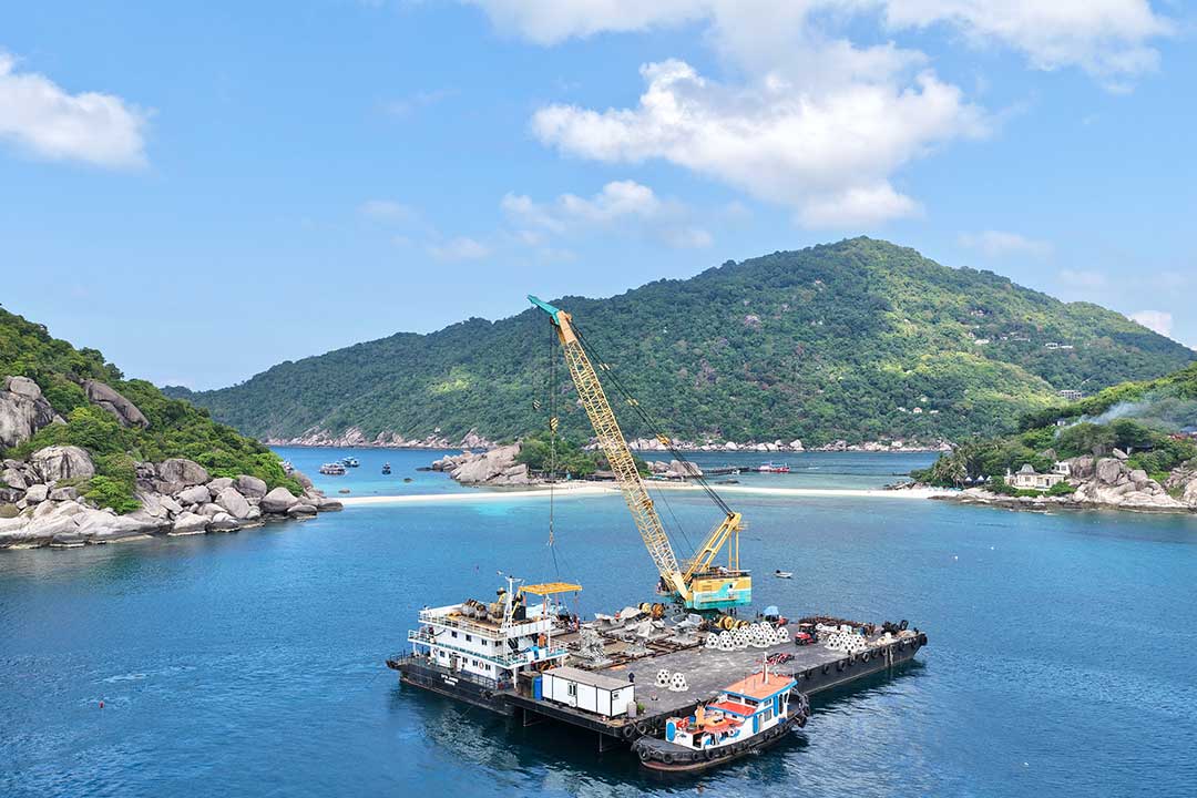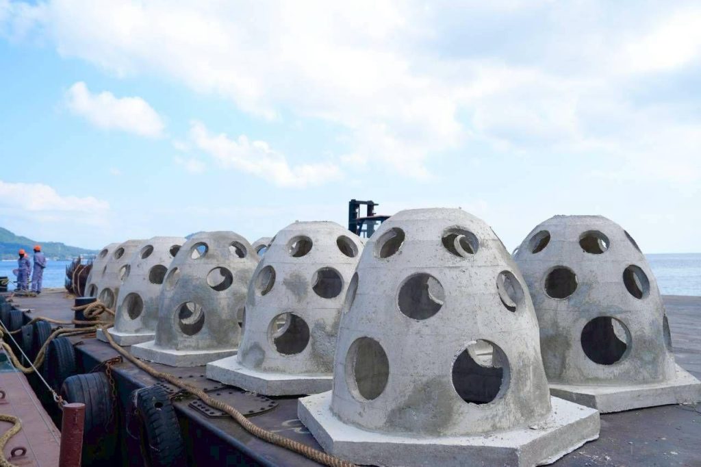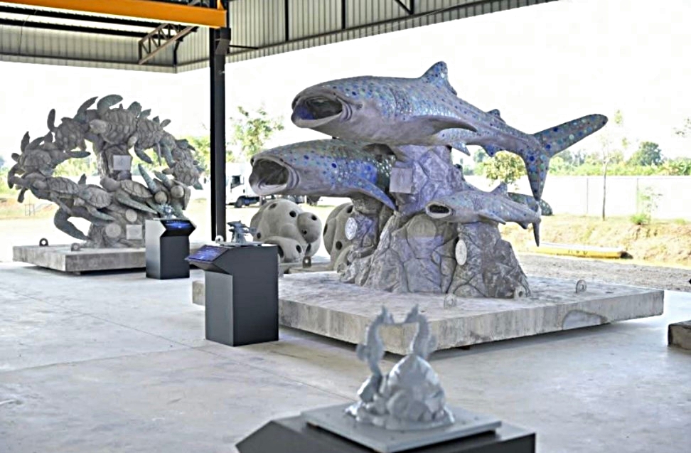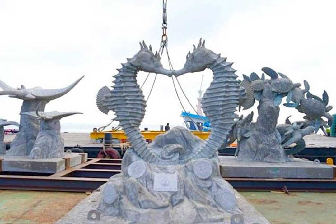 ประติมากรรม 9 ชิ้น หนักชิ้นละ 20+ ตัน คอรัลบอลฐาน 1.8 เมตร 80 ก้อน หนักก้อนละ 1.2 ตัน คงลงทะเลเสร็จสิ้นในวันมะรืนนี้