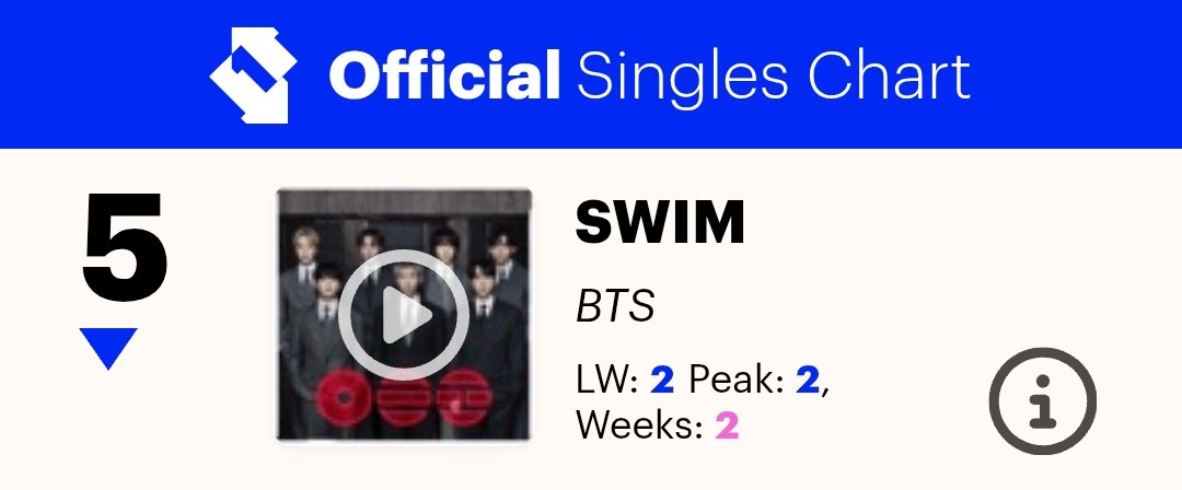 เพลง "SWIM" by BTS ไต่ขึ้นสู่อันดับ #1 บน the UK Big Top 40 Chart ในสัปดาห์ที่ 2 พร้อมกับเพลงในอัลบั้มอีก 3 เพลงเข้าชาร์ตนี้ ✨UK Big Top 40 Chart #1 — SWIM (+2) (2 weeks) * #19 &