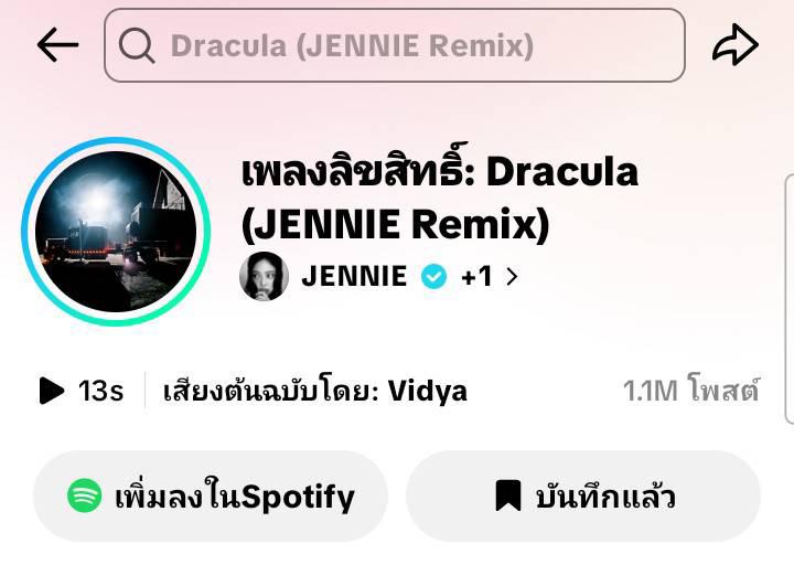 🧛♀️ Dracula – JENNIE Remix ขึ้นสู่อันดับ #15 บนชาร์ต Spotify ทั่วโลก ด้วยยอดสตรีม 3.58 ล้านครั้ง 🥳