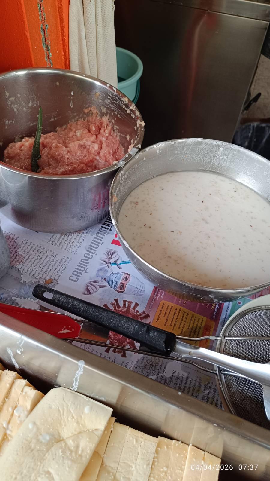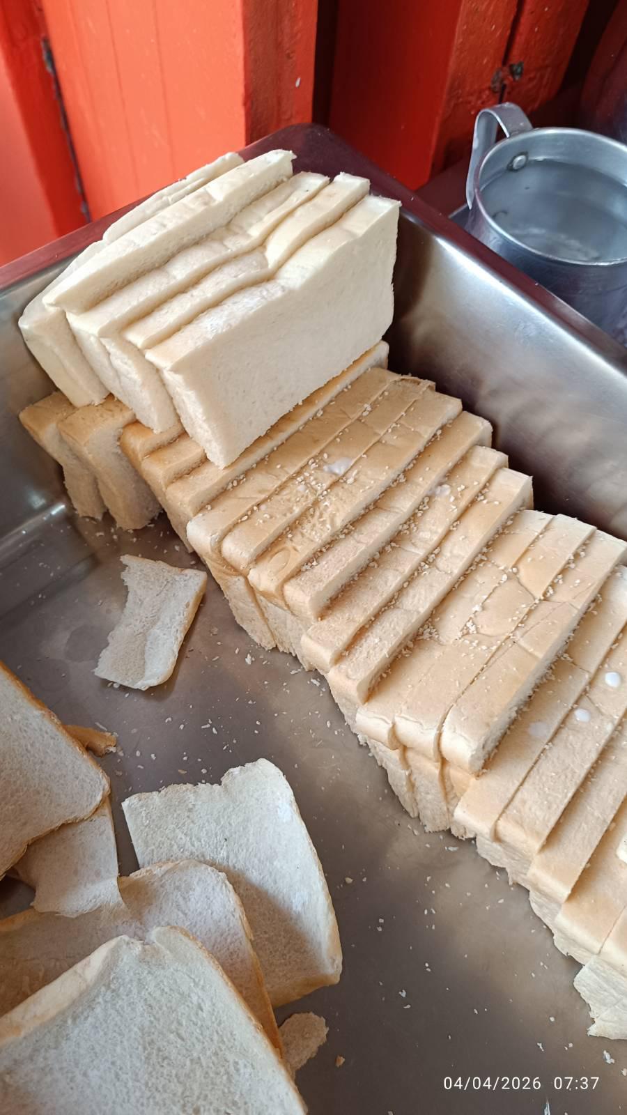 เช้านี้ มาซื้อขนมปังหน้าหมู ร้านประจำครับ เป็นเมนูที่ไม่ซับซ้อน กินร้อน ๆ จะอร่อยกว่า