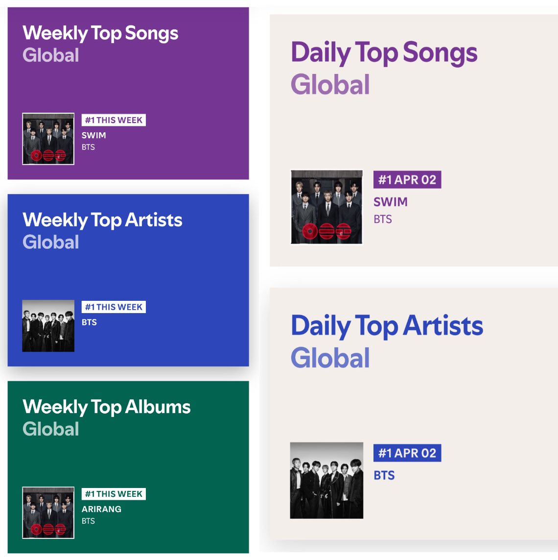 BTS สร้างประวัติศาสตร์ในฐานะศิลปินเอเชียที่ครองอันดับ 1 ในทุก Spotify Global charts เป็นเวลาสองสัปดาห์ติดต่อกัน