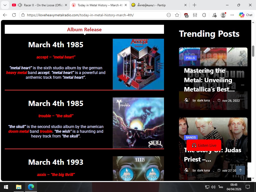 เวบเมทัลที่มี วันนี้ในอดีตมีอัลบั้มเมทัลอัลบั้มไหนเคยออกวางจําหน่ายบ้าง เหมาะกับสาวกเมทัลที่ชอบฟังเพลงเมทัลจ้า