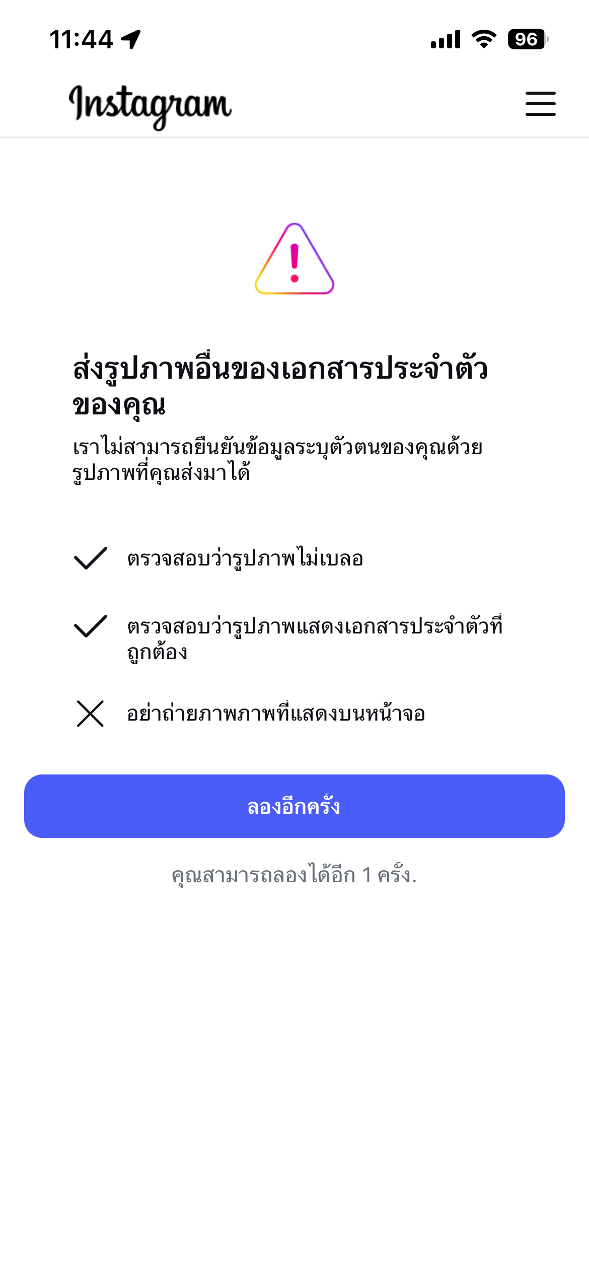 ยืนยันตัวตนไอจีไม่ได้