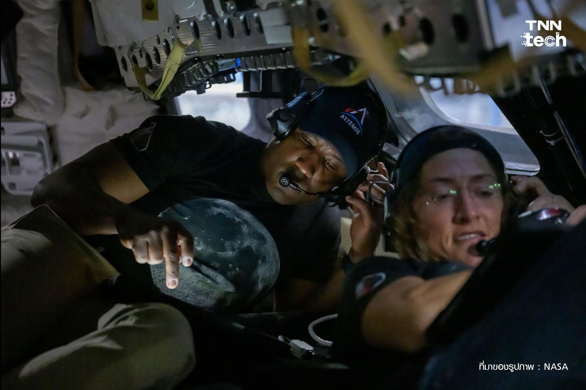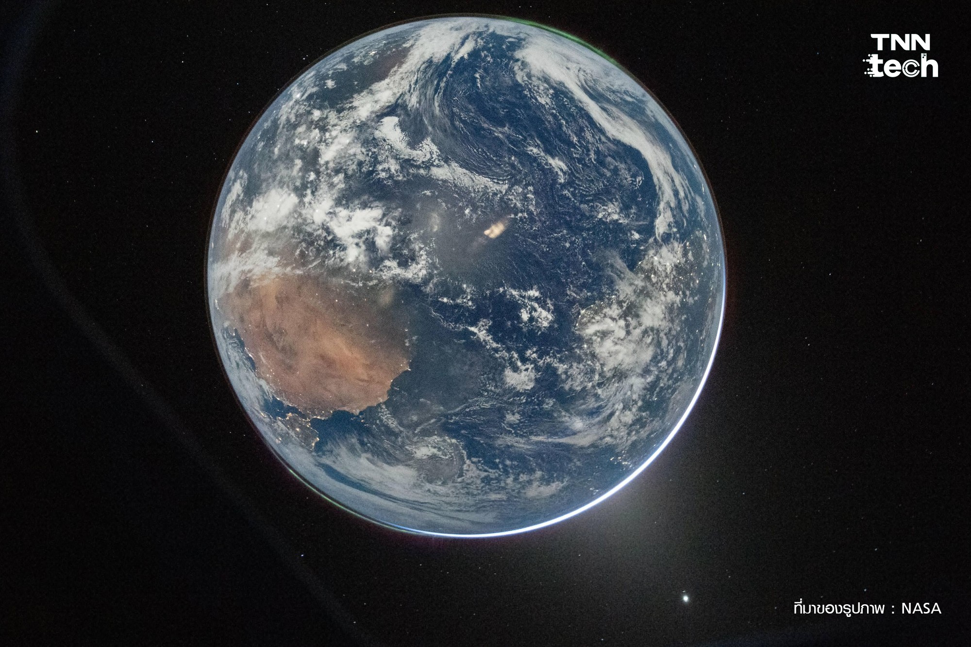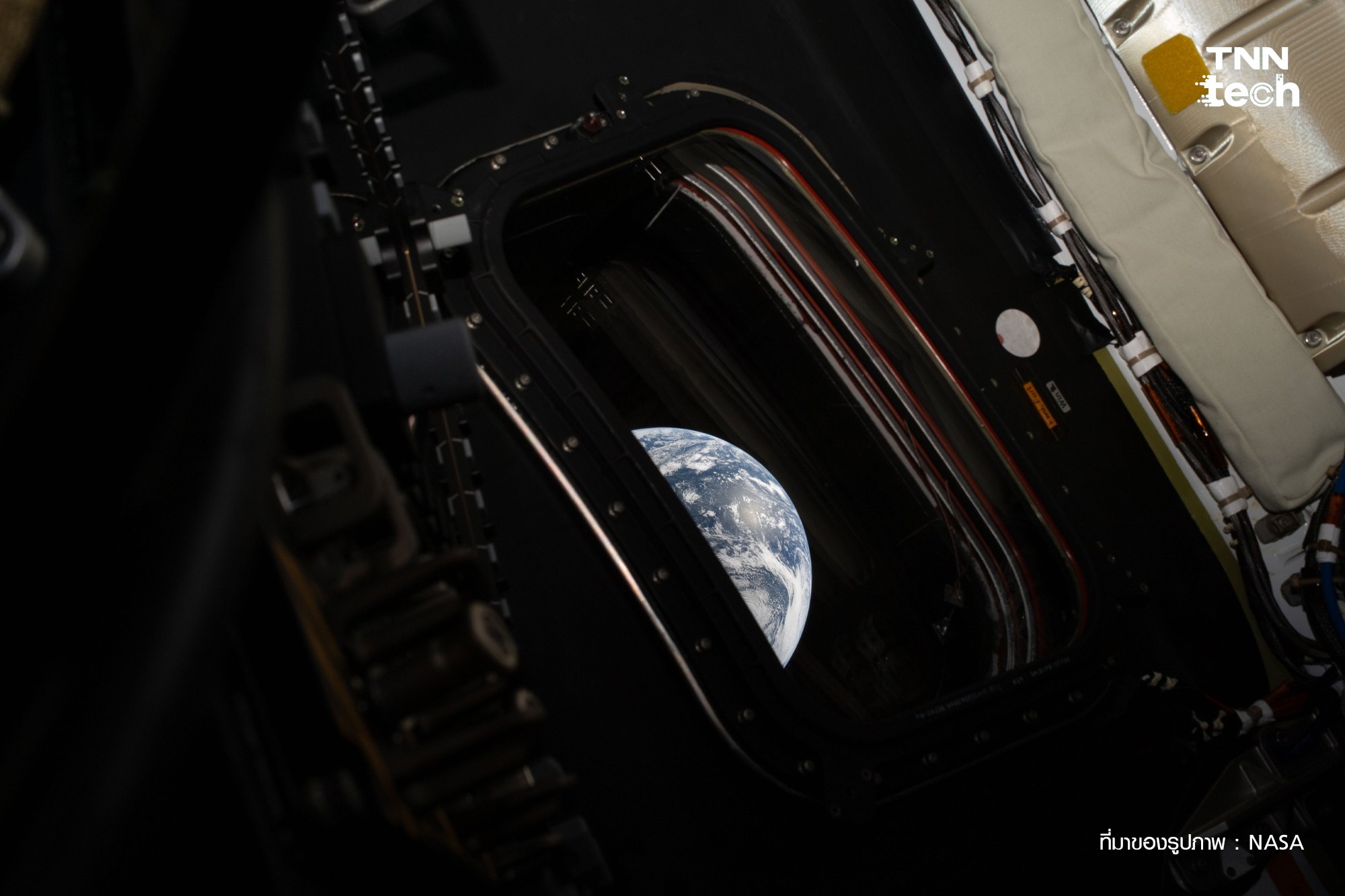 ซึ่งถูกบันทึกภาพย้อนกลับมาผ่านหน้าต่างของยาน Orion ในภารกิจ Artemis 2 ในขณะที่กำลังเดินทางมุ่งหน้าสู่ดวงจันทร์