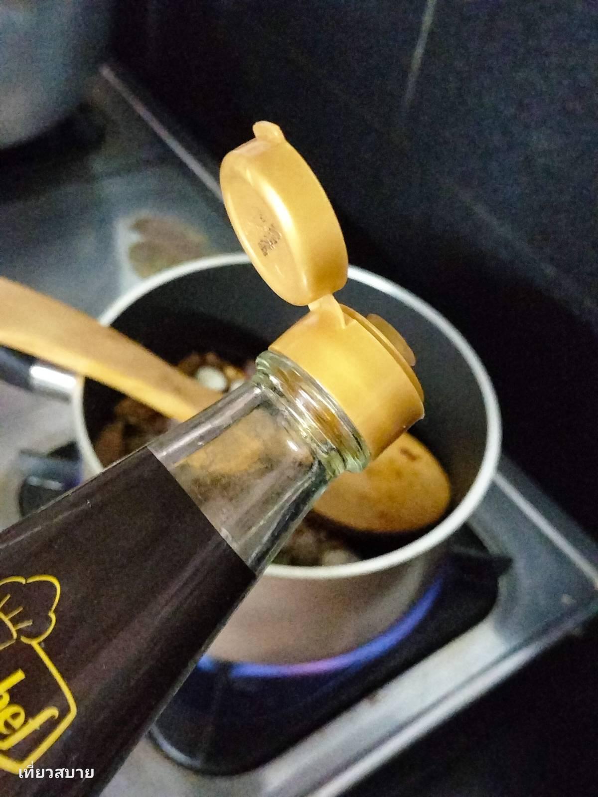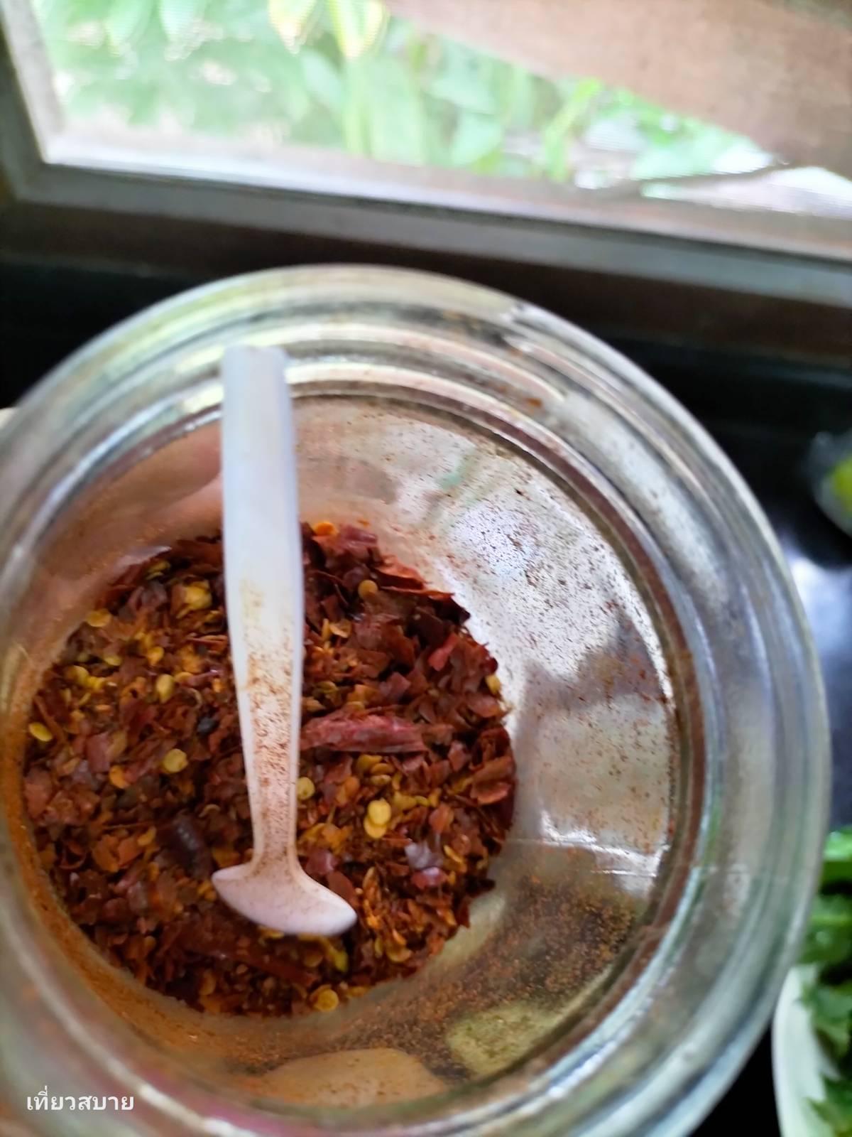 → เติมน้ำพริกเผา ½ ช้อนโต๊ะ