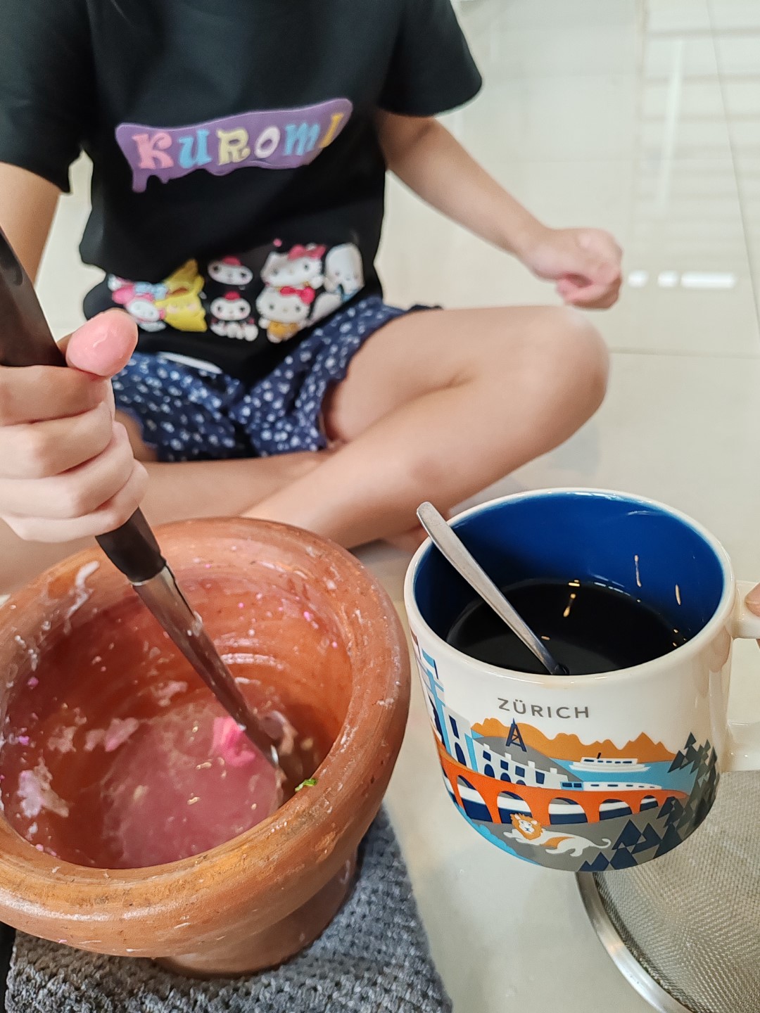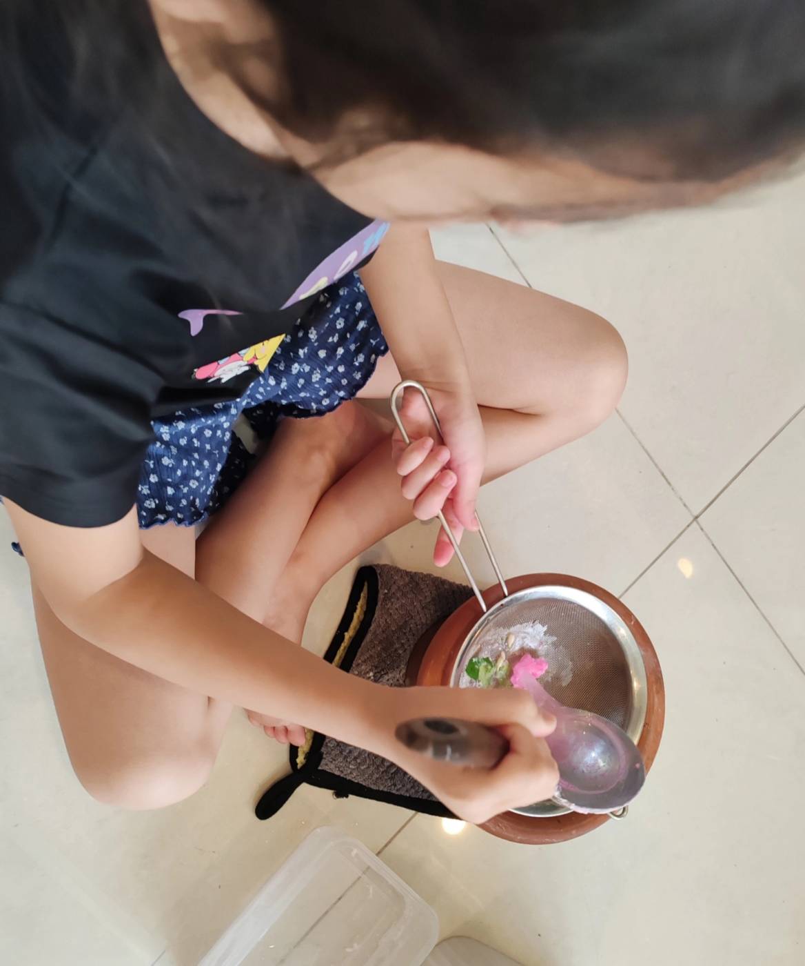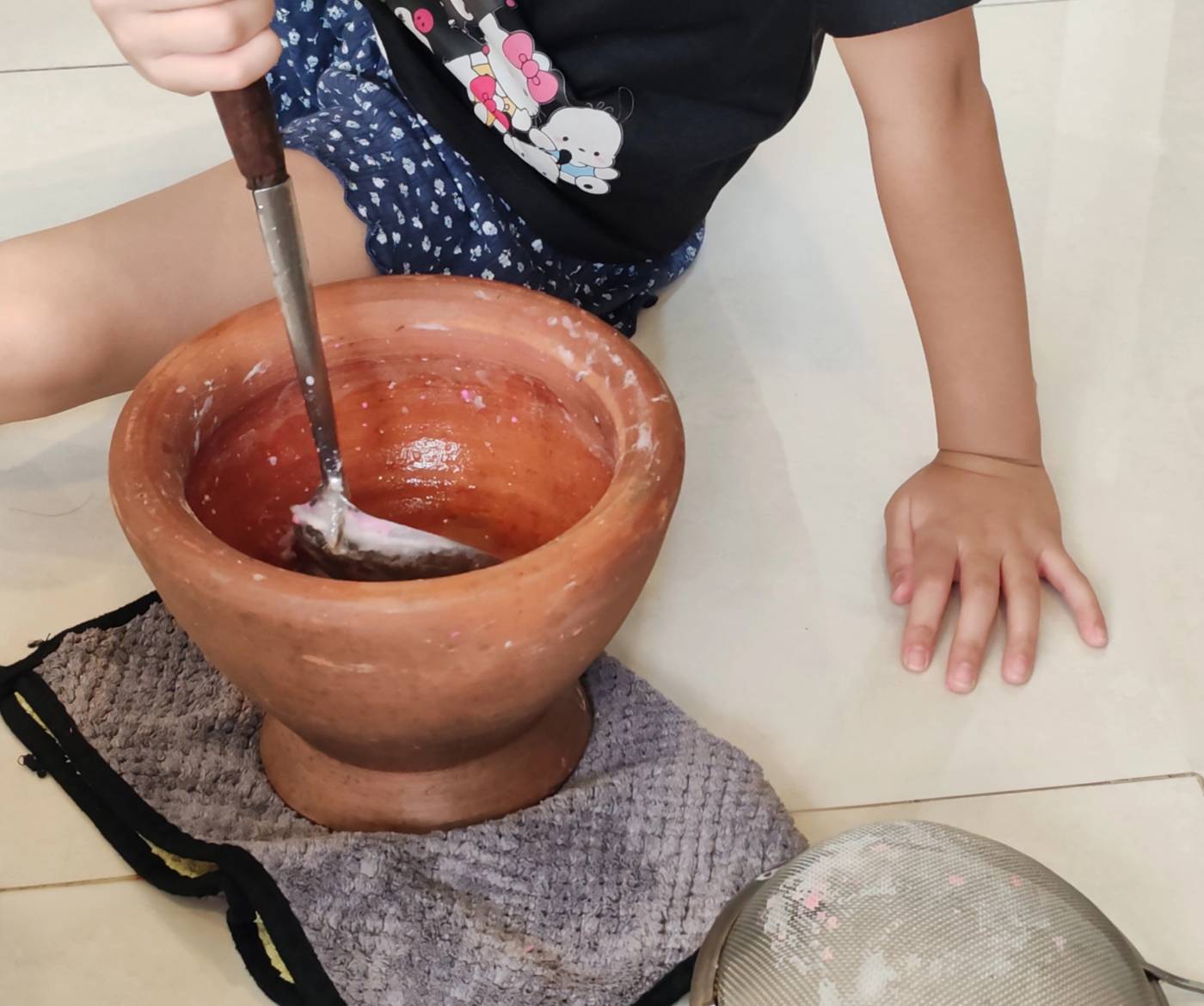 เรียกมาเป็นลูกมือ ถามว่า ตำอะไร วันนี้ ไอ่เราก็ชงกาแฟมา ตัวน้อยบอก ปลาร้ารึเปล่าเอาไปเก็บเลย วันนี้ไม่ได้ทำส้มตำ