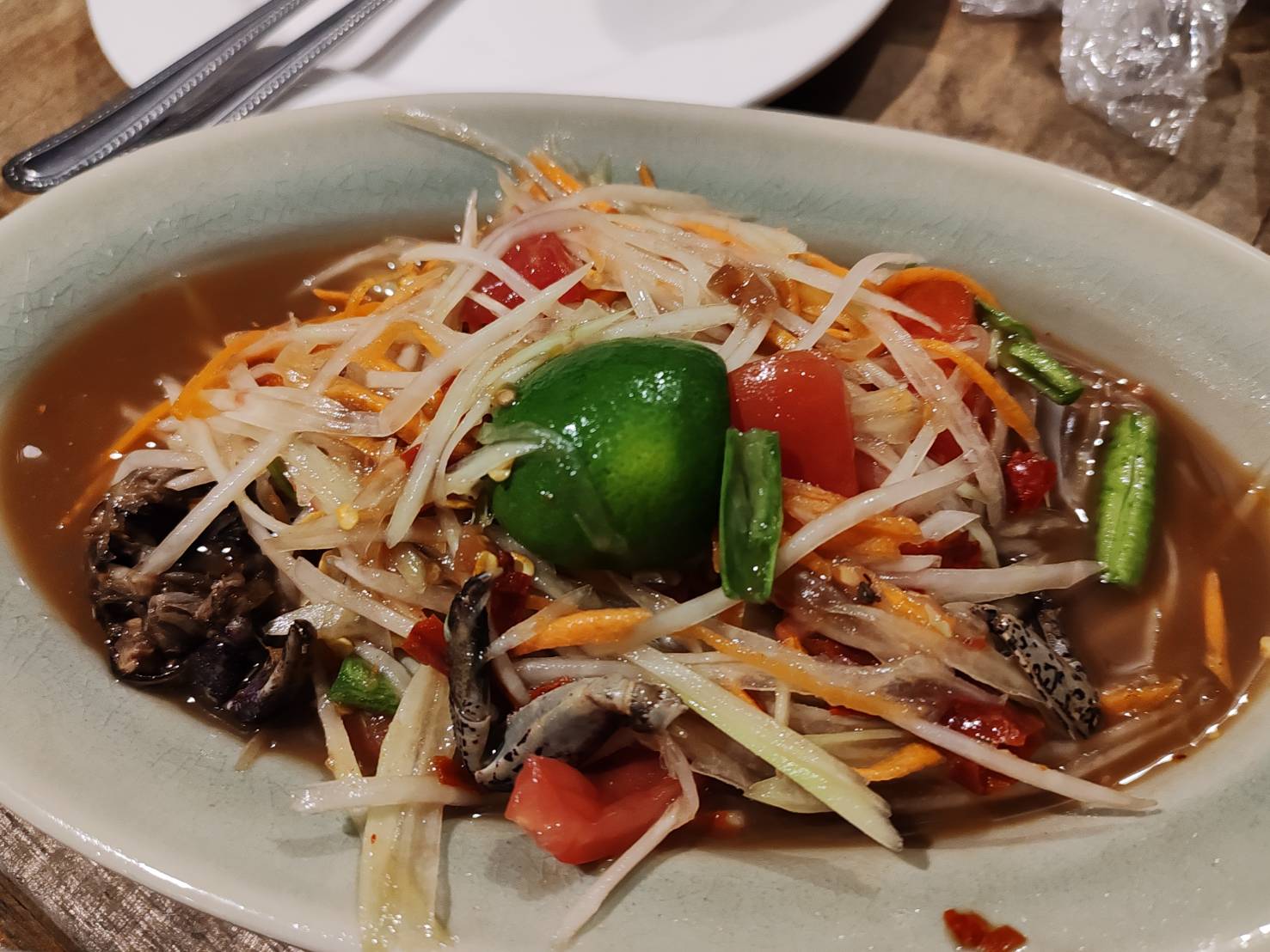 กลับมา กลับมา เห็นครก ตำองุ่นแล้ว แล้วอยากกินส้มตำ เอารูปมาลงหน่อยนะครับ จัดไป 2 จาน