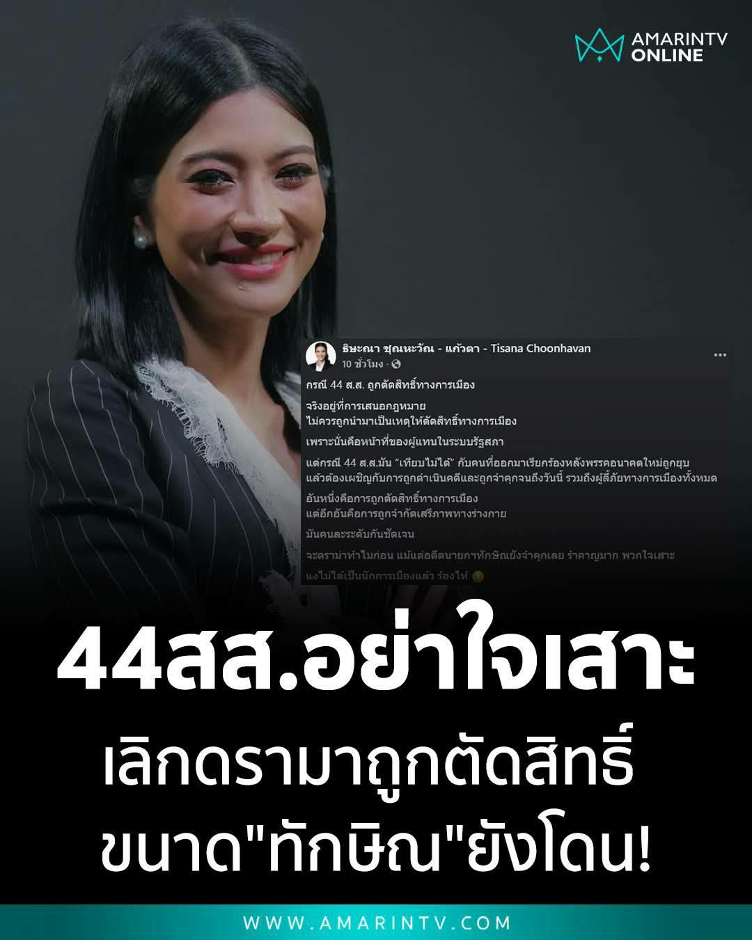 #ธิษะณาชุณหะวัณ #44สส #พรรคประชาชน #ตัดสิทธิ์ทางการเมือง #ก้าวไกล #ทักษิณชินวัตร #การเมืองไทย #แก้วตาธิษะณา #AmarinTV #amarintvonline #ข่าวอมรินทร์ออนไลน์
