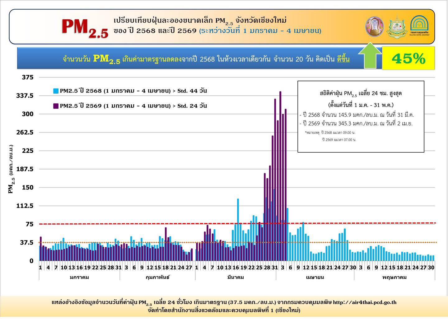 เปรียบเทียบฝุ่น PM2.5 จ.เชียงใหม่ ปี 68-69