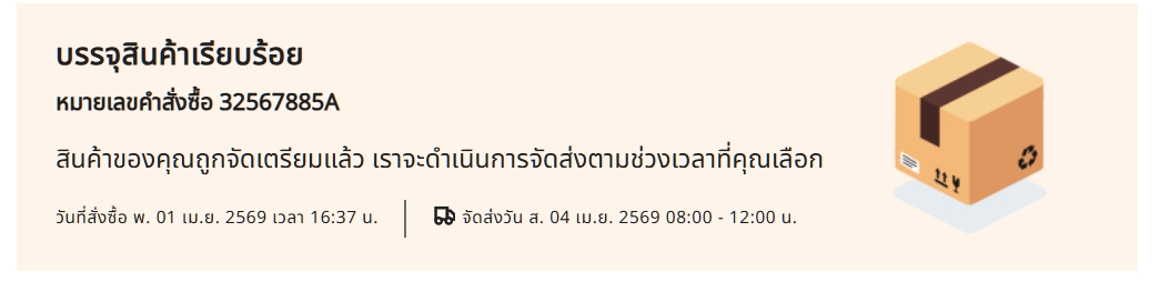 วันที่ 1 เมษา สั่งของให้มาส่งล่วงหน้าในวันที่ 2 เมษาช่วงเวลา 16:00 -20:00 น. แต่ประมาณ 2 ทุ่มนิดๆ เราก็ได้รับโทรศัพท์ว่าคิวรถส่งของหมดขอเลื่อนส่งไปอีกวันนึง ซึ่งเราไม่สะดวกเลยนัดเป็นเช้าวันเสาร์ที่ 4 ช่วงเวลา 8:00 น. แต่ทางพนักงานที่โทรมาก็ขอเป็น 8:00-12:00 น. เราก็โอเคเพราะช่วงเช้าไม่ได้ไปไหน