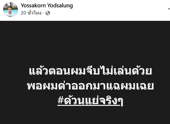 ภาพจากเฟซบุ๊กนายแบงค์ จนป่านนี้ยังไม่สำนึก