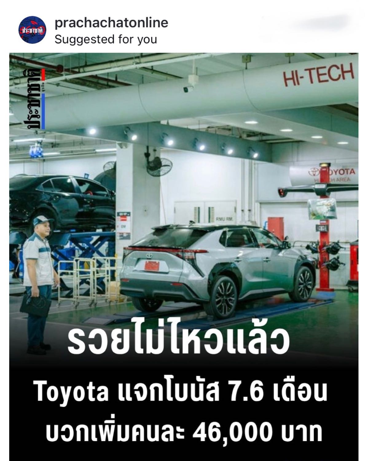 รวยไม่ไหวแล้ว โตโยต้าแจกโบนัส 7.6 เดือน+ เงินเพิ่ม 46,000฿ 💵💵💵