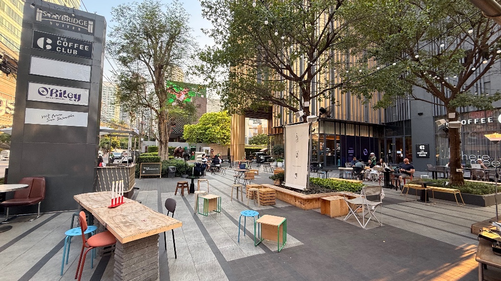 • บรรยากาศ (Vibe): ร้านตกแต่งสไตล์มินิมอล มีที่นั่งแบบ Outdoor และเก้าอี้ปิกนิกใต้ต้นไม้ใหญ่ ให้ความรู้สึกเหมือนนั่งเล่นในสวนหรือย่านต่างประเทศ บรรยากาศจะดีเป็นพิเศษในช่วงเย็นที่มีการประดับไฟและมีดีเจเปิดเพลง