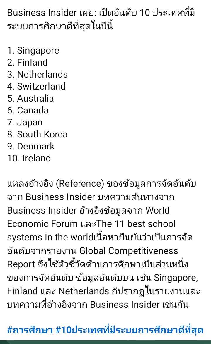 สิงคโปร์ แซง ฟินแลนด์ ระบบการศึกษาดีที่สุดในโลกปีล่าสุด