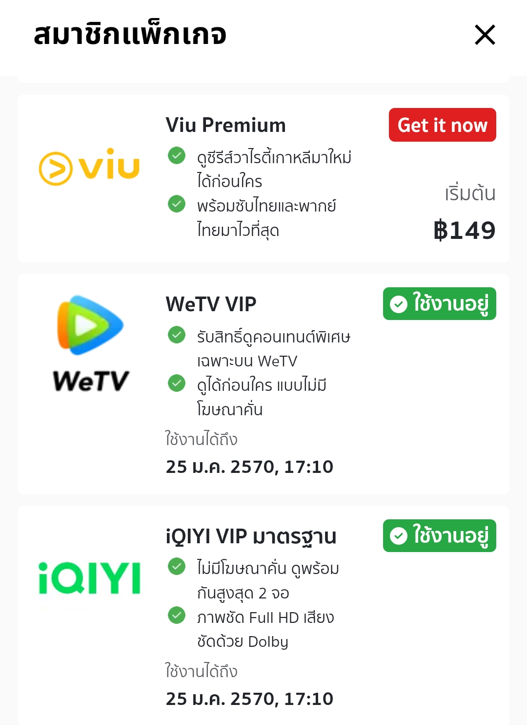 เราได้สมัครแพ็กเกจ PLAY ASIAN ของ AIS เมื่อประมาณวันที่ 1 เม.ย. 2568 ใช้งานได้ 1 ปี ซึ่งในแพ็กเกจประกอบด้วย 3 แอปคือ IQIYI, VIU และ WETV ตอนแรกสามารถใช้งานทั้ง 3 แอปได้ตามปกติ แต่ตอนนี้พบว่า WETV ขึ้