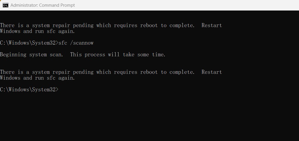 ใช้คำสั่ง sfc /scannow แล้วมันไม่ไปไหนเลย มันจะขึ้นข้อความแบบนี้ทุกครั้ง เป็นสี่ห้ารอบแล้ว แก้ยังไงดีครับ