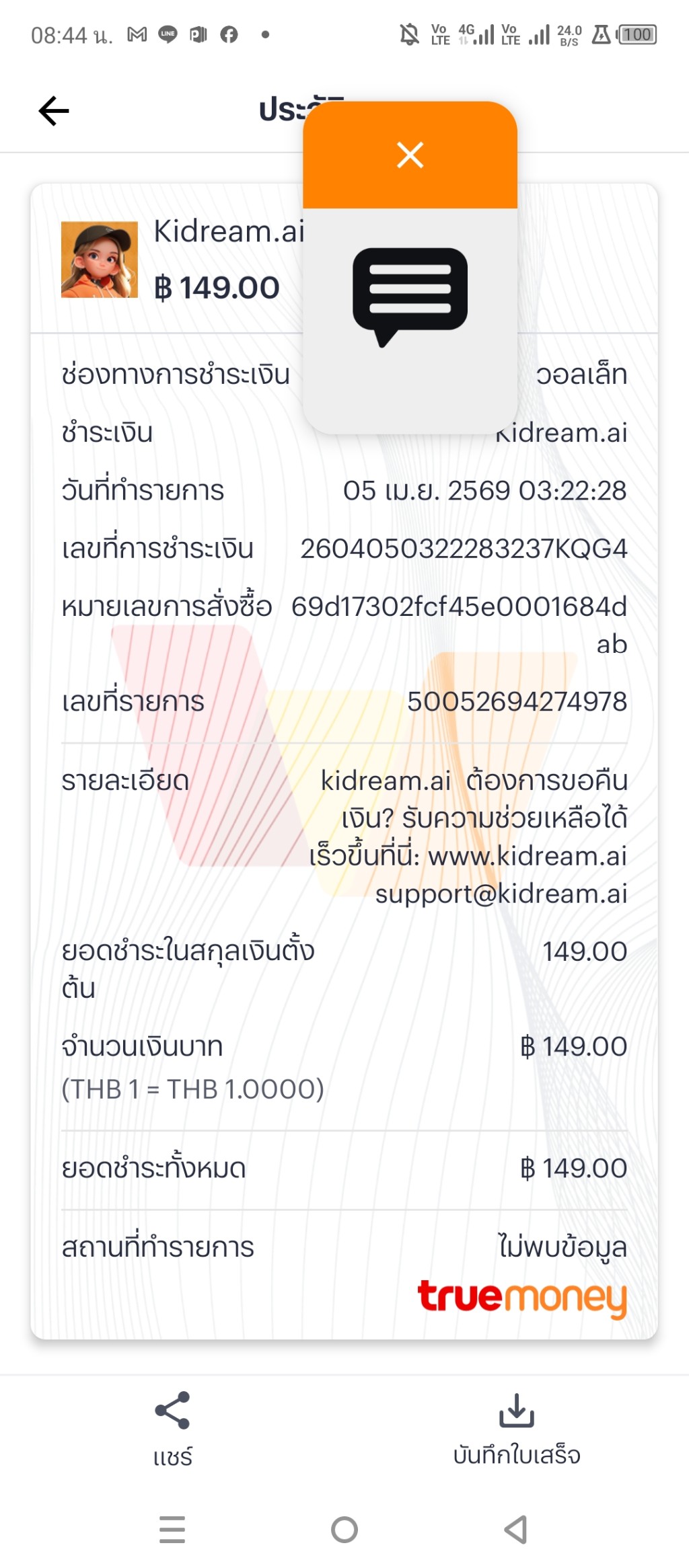 ขอเปิดสันยานดีแทคเพื่อขอรับข้อความนัดจ่ายรายเดือน