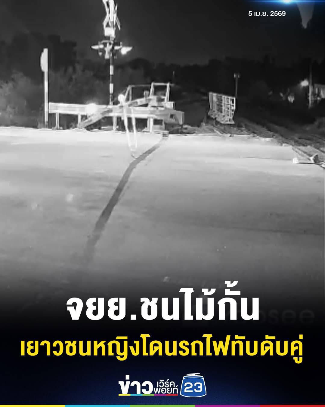 ช่วยไม่ทัน! 2 เยาวชนหญิงซิ่ง จยย.ชนไม้กั้น เสียหลักล้มถูกรถไฟชนดับ