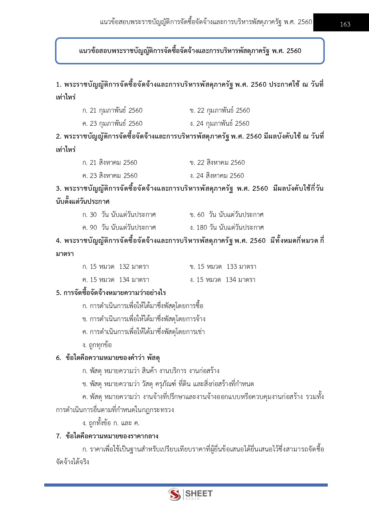 - แนวข้อสอบสรุปสาระสำคัญระเบียบกระทรวงการคลังว่าด้วยการจัดซื้อจัดจ้างและการบริหารพัสดุภาครัฐ พ.ศ. 2560