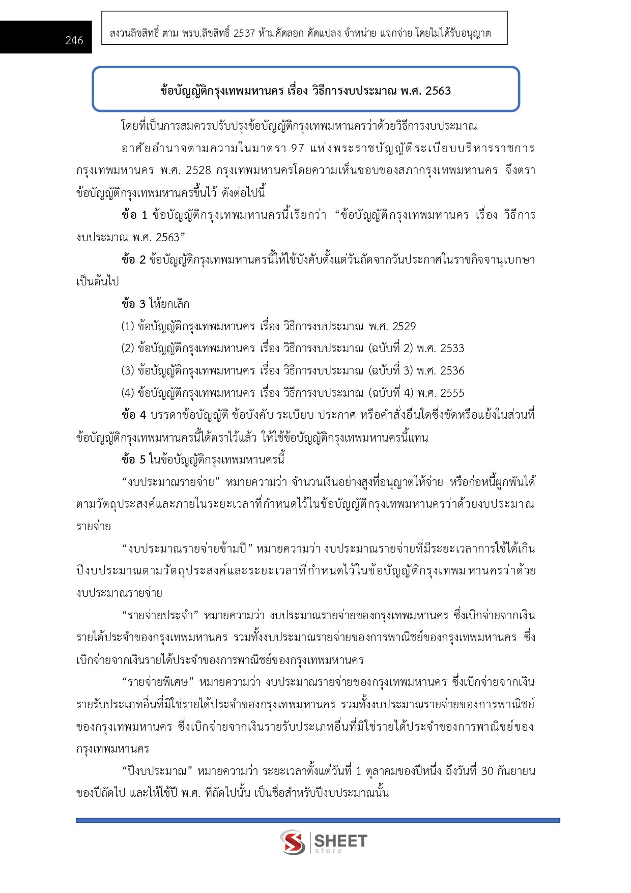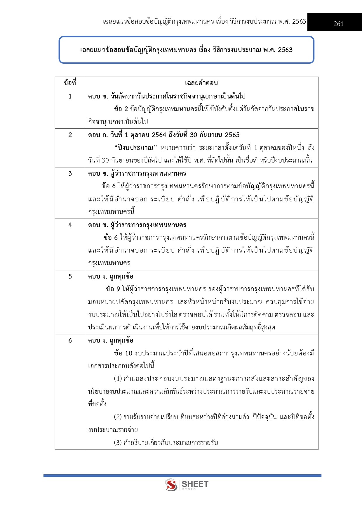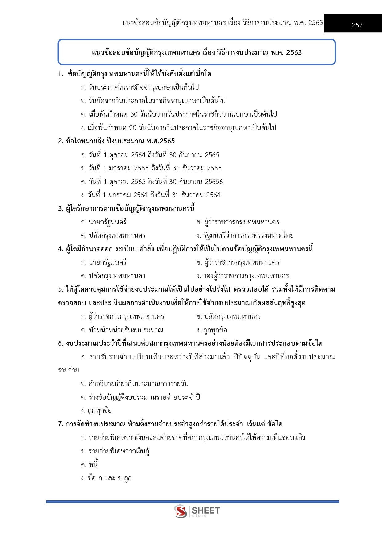 - แนวข้อสอบข้อบัญญัติกรุงเทพมหานคร เรื่อง วิธีการงบประมาณ พ.ศ. 2563