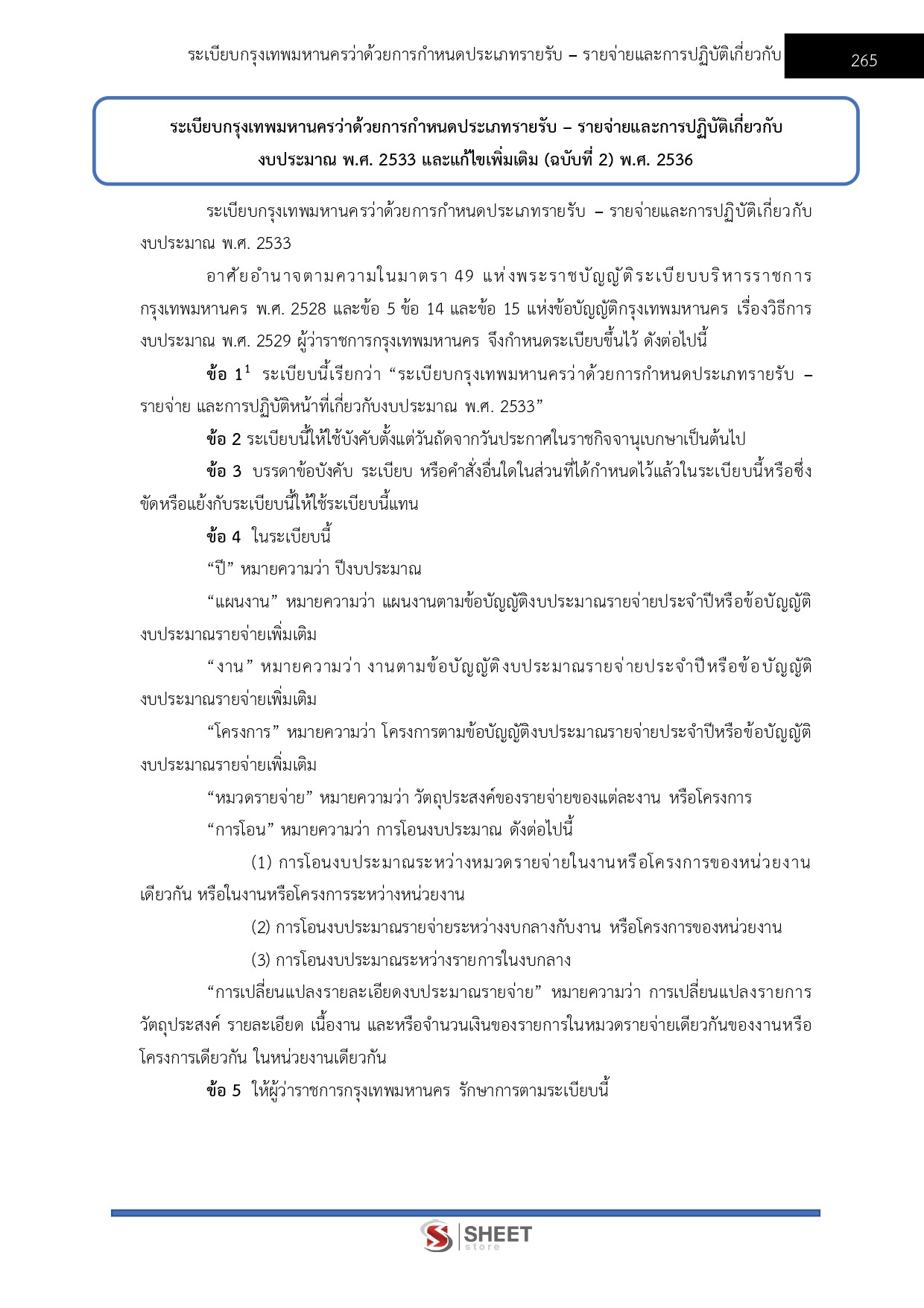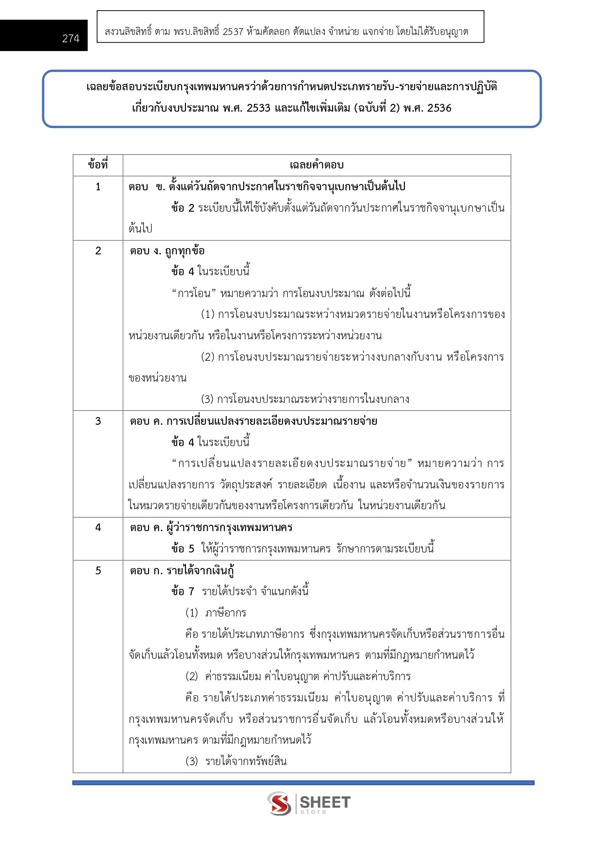 - แนวข้อสอบระเบียบกรุงเทพมหานครว่าด้วยการกำหนดประเภทรายรับ - รายจ่ายและการปฏิบัติเกี่ยวกับงบประมาณ พ.ศ. 2533 และแก้ไขเพิ่มเติม (ฉบับที่ 2) พ.ศ. 2536