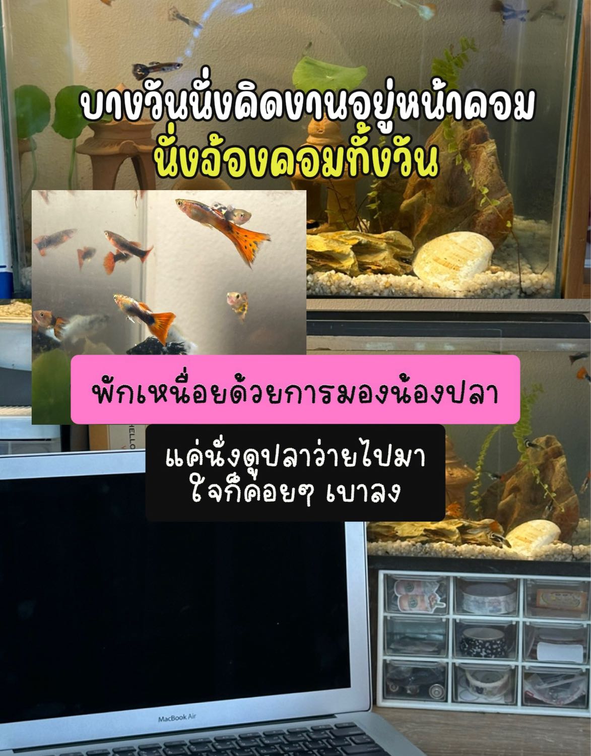 “ตู้ปลาเล็กๆ ข้างโต๊ะ” 🐟🫧