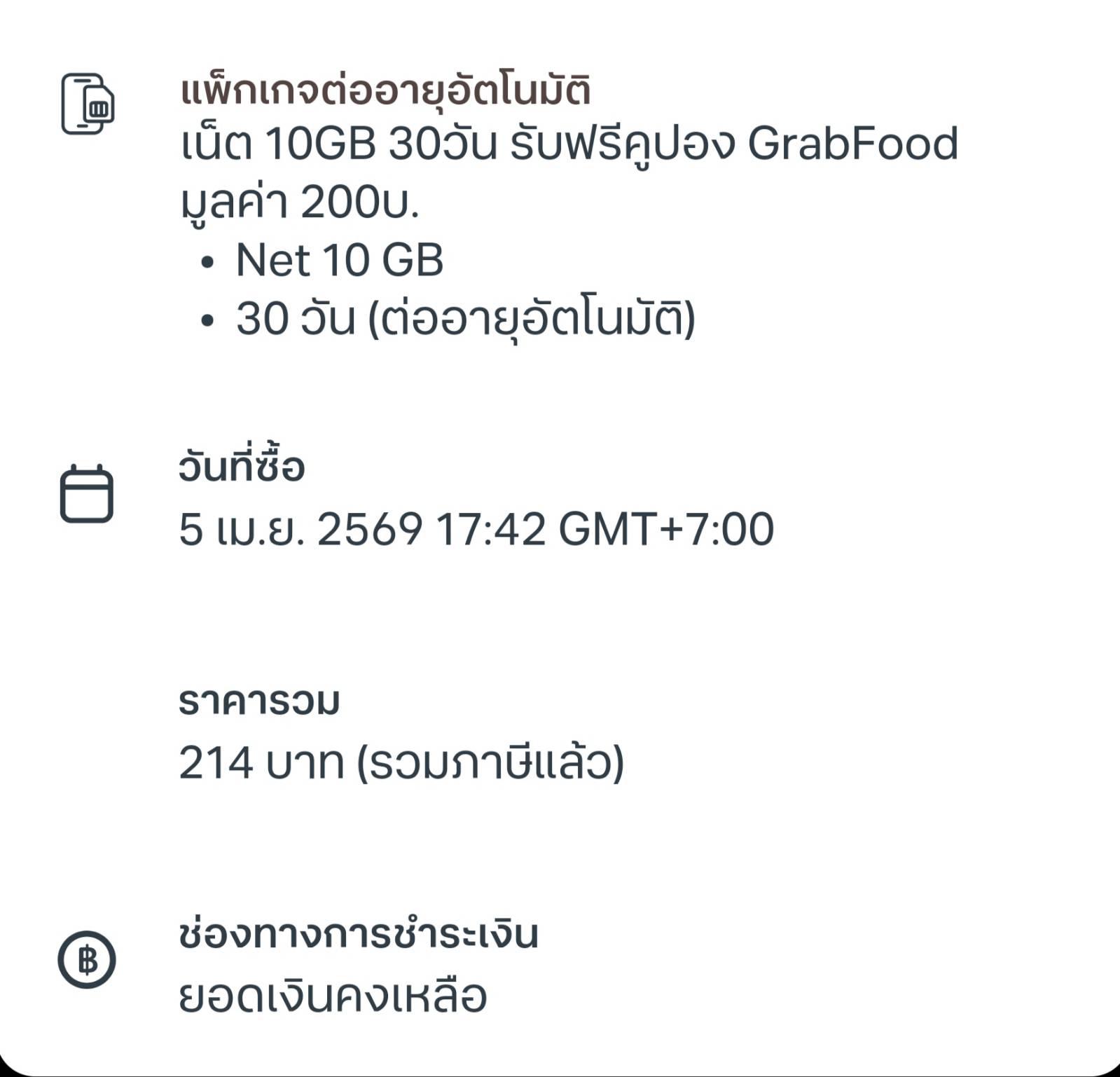 สวัสดีครับ ได้ทำการสมัครโปรเสริมเน็ต + คูปอง Grab ราคา200บาท