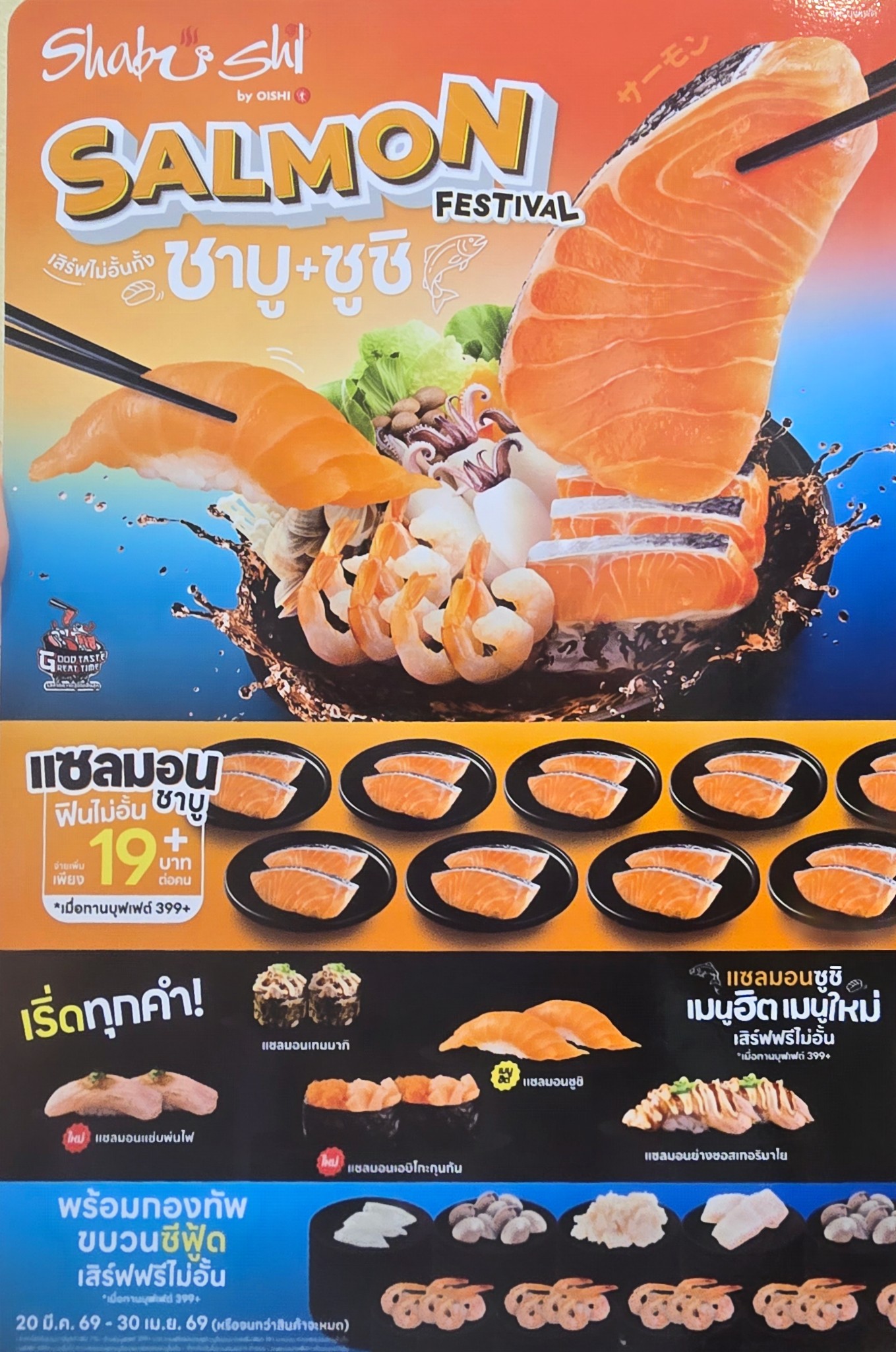 ความเห็นส่วนตัว: ถ้าเป็นช่วงปกติ ผมว่ากินแค่ 298+ ก็พอแล้วครับ เพราะเมนูซูชิที่เพิ่มมาในราคา 399+ ผมมองว่าคล้ายๆ ตี๋น้อยพลัส คือบวกราคาเพิ่มมาแต่เมนูยังไม่ค่อยว้าวเท่าไหร่ แต่! ที่วันนี้ผมเลือกกิน 399+ เพราะช่วงนี้เขามีโปร Salmon Festival เพิ่มเงินแค่ 19.- ก็ได้แซลมอนชาบูไม่อั้นครับ!