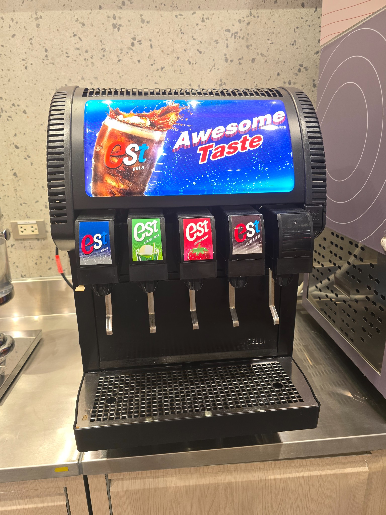 บาร์น้ำ: มี est cola no sugar เพิ่มมาแล้ว (ถูกใจสายสุขภาพ) แต่ตัดน้ำฝรั่งออกไป