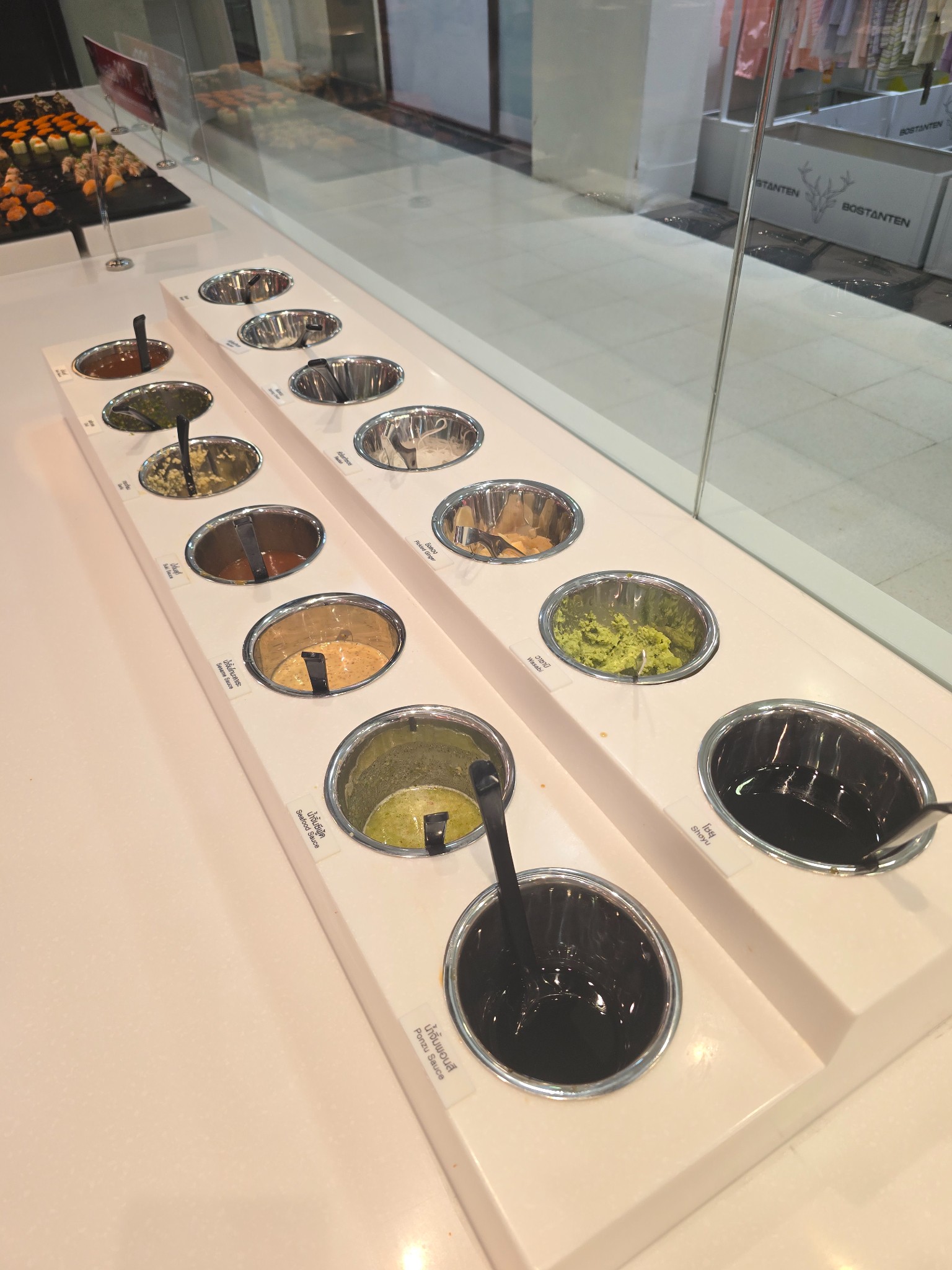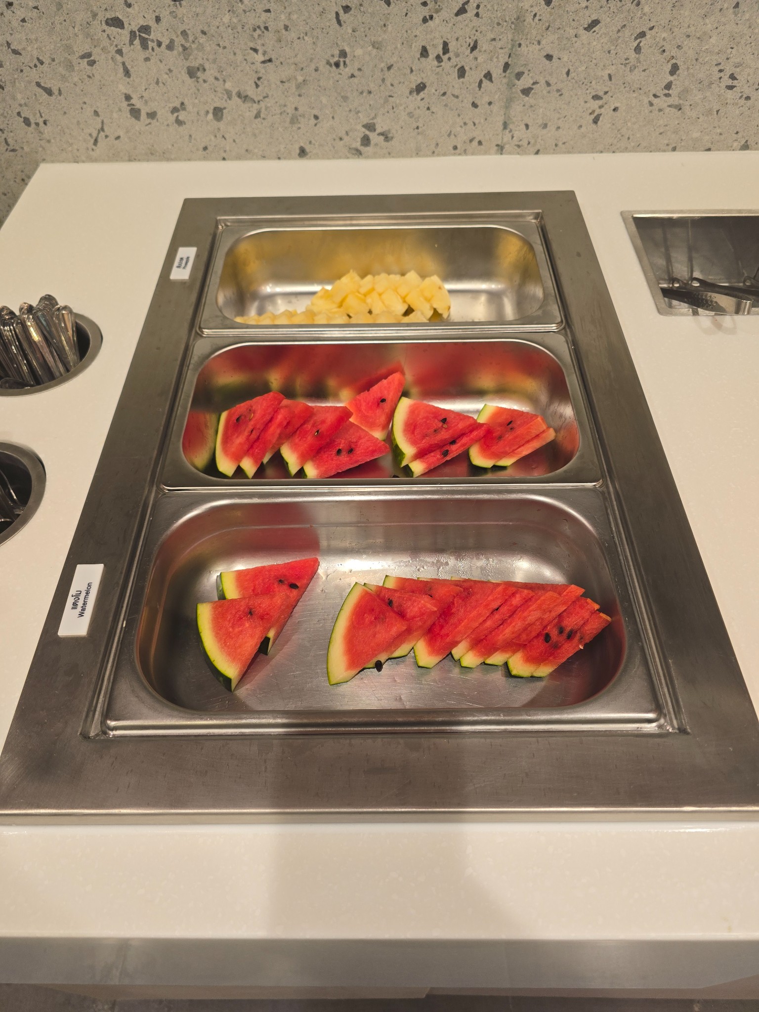 ของหวาน: ย้ายไปอยู่โซนผสมน้ำซุปเก่า เหลือแค่แตงโม สับปะรด (ตัด Fruit Salad ออก) ไอศกรีมตักเหลือ 2 รส (ช็อก/วานิลลา) แต่มีไอศกรีมแท่งแมกโนเลียรสโคล่าและไฟแดงเพิ่มมาให้ครับ