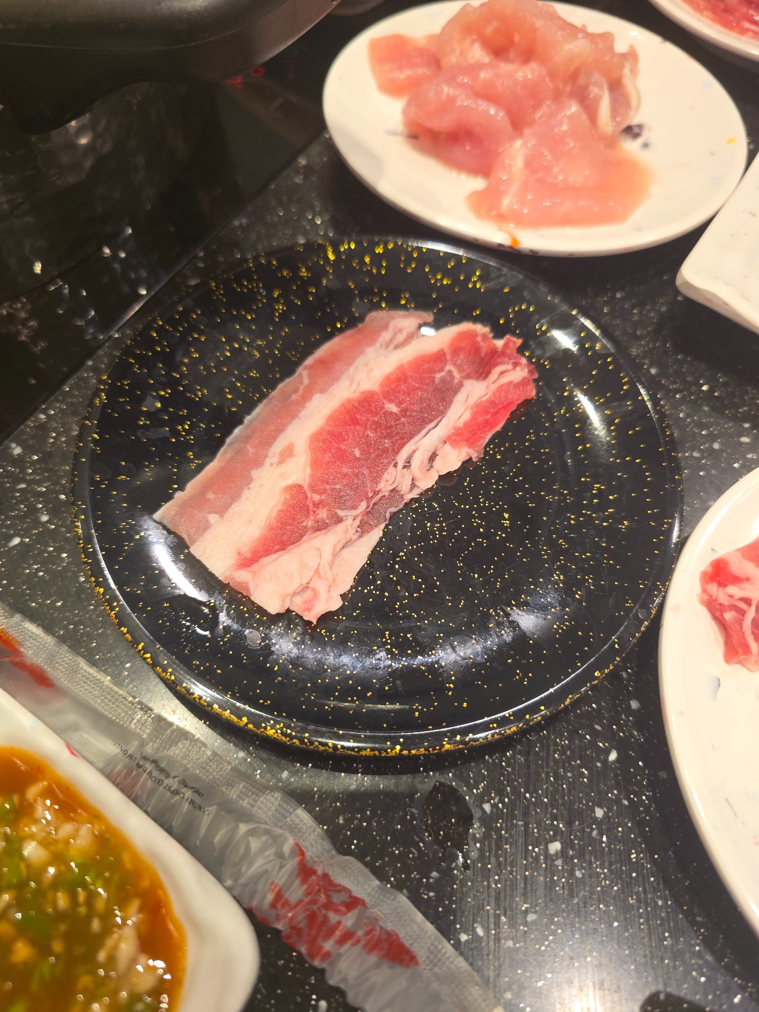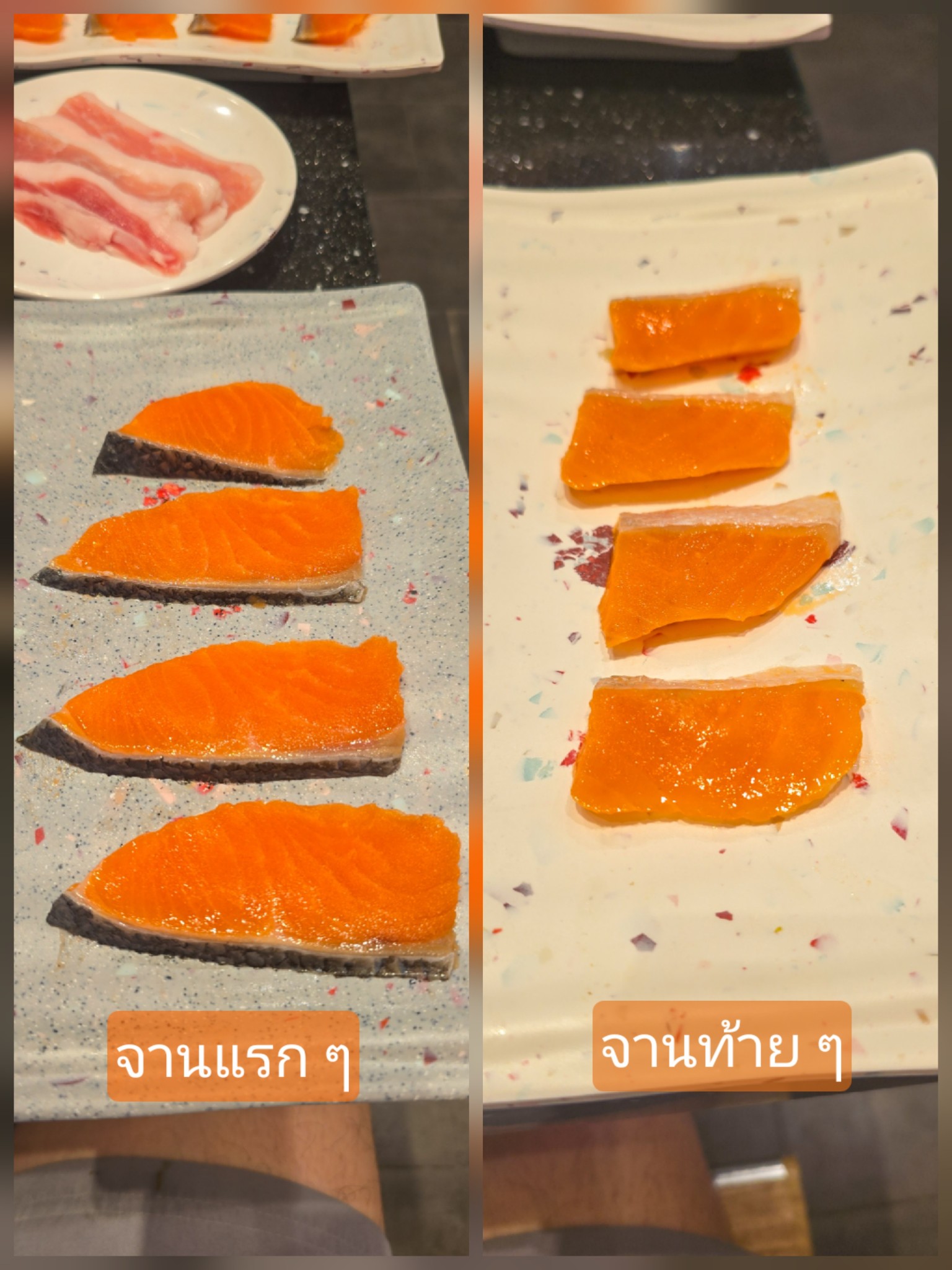 แซลมอนชาบู: 6 จานแรกคือดีมาก! ชิ้นใหญ่ เนื้อแน่น แต่ 2 จานสุดท้ายมาแบบชิ้นเล็กนิดเดียว (ตามรูปเลยครับ)