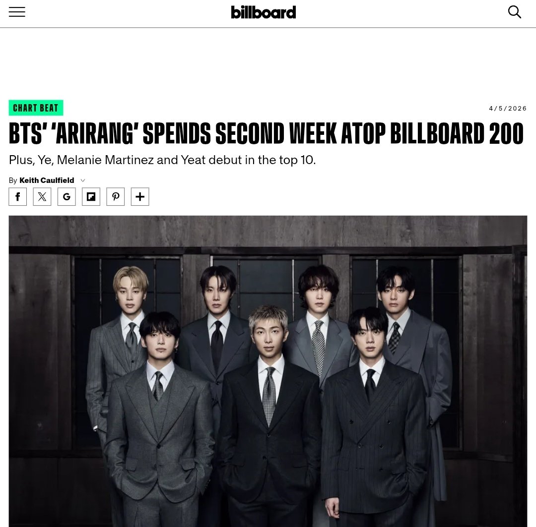 ✨[BTS] อัลบั้ม ARIRANG ยังคงครองอันดับ #1 บน Billboard 200 ด้วยยอดขาย 187,000 ยูนิต [สัปดาห์ที่ 2]