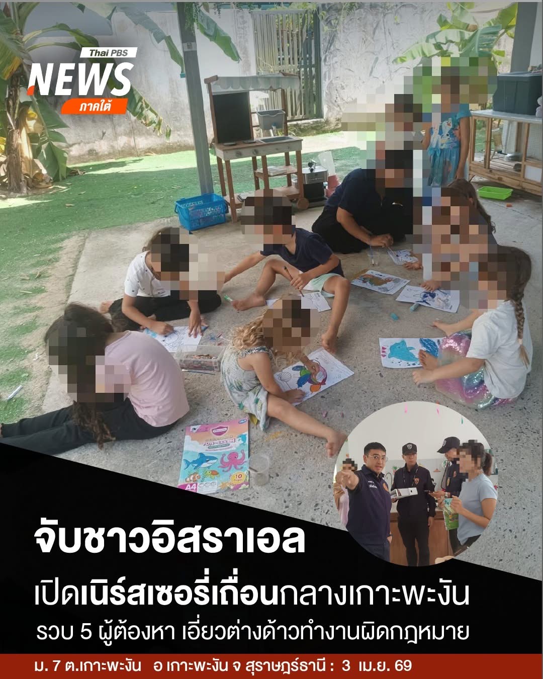 จับชาวอิสราเอล เปิดเนิร์สเซอรี่เถื่อน กลางเกาะพะงัน รวบ 5 ผู้ต้องหาเอี่ยวต่างด้าวทำงานผิดกฎหมาย