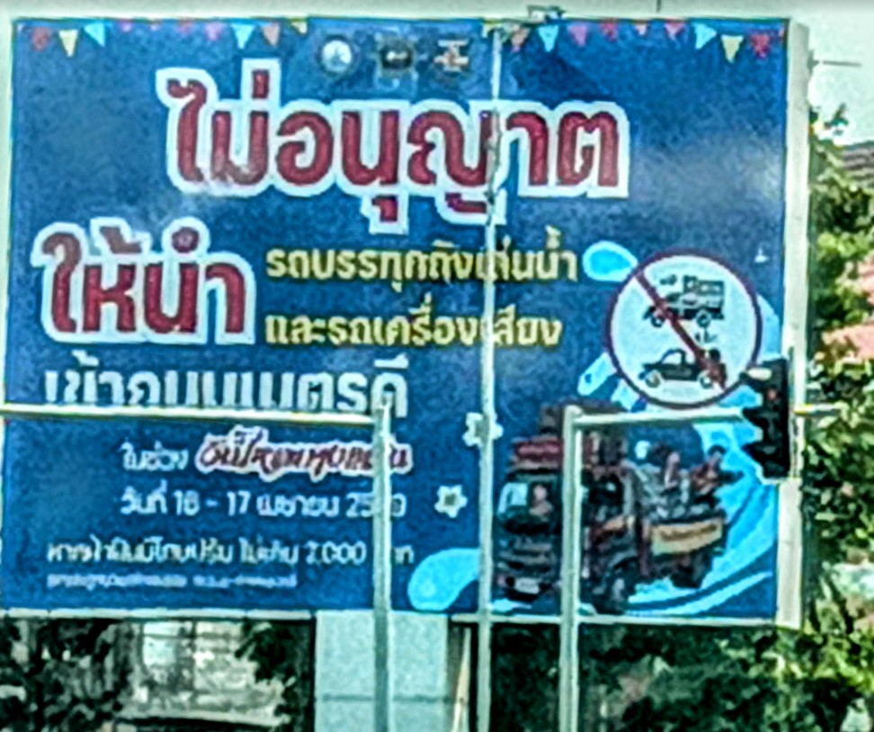 เพราะฉะนั้น ช่วงวันไหลบางแสน ๑๖-๑๗ เมษายน อย่าเอารถบรรทุกน้ำเพื่อสาดกัน และรถเครื่องเสียง เข้าไปเด็ดขาด จะเสียเที่ยวเสียเวลาเสียอารมณ์ได้