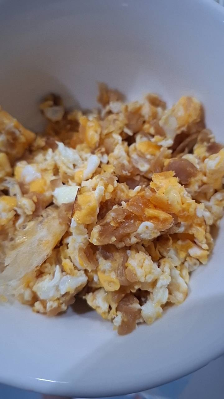 ไชโป้ว ผัดไข่สองฟอง สำหรับมื้อเช้า กินกับข้าวต้มขาว