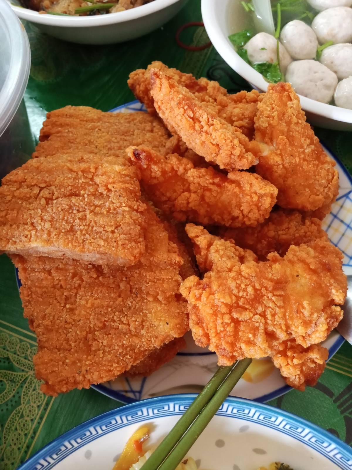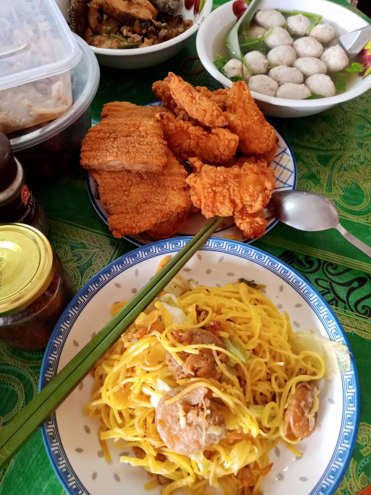 ผัดหมี่ ไก่กรอบ ต้มลูกชิ้น