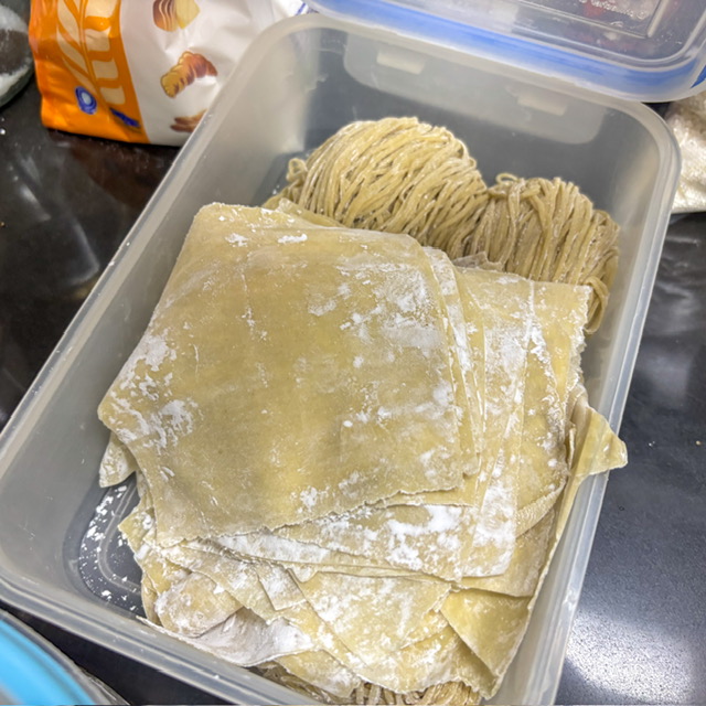 แน่นอนผมทำบะหมี่ใบเกี๊ยวเอง บะหมี่และใบเกี๊ยวสมัยก่อนที่บ้านทำเอง ผมก็อยากกลับไประลึกถึงความหลัง