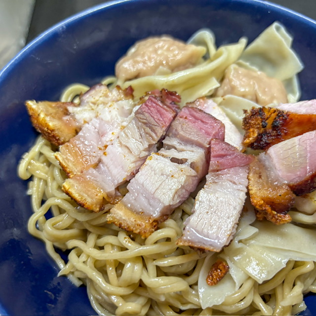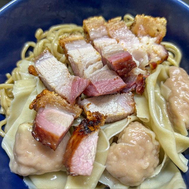 อันนี้ทำให้ลูกกินวันอาทิตย์ บะหมี่เกี๊ยวหมูกรอบรมควัน