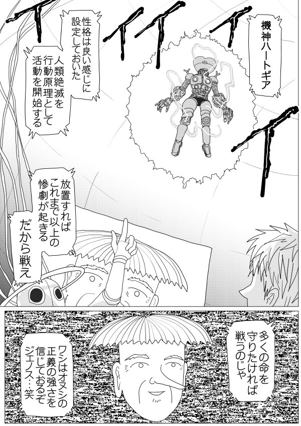 -คุเซโนะบอกเจนอสไปว่า เจนอสมันหมดประโยชน์แล้ว ถึงเวลาต้องทดสอบและกำจัดเจนอสทิ้งแล้ว ว่า แล้วคุเซโนะก็เรียกจักรกลเทพตัวหนึ่ง ฮาร์ทเกียร์ มาทดสอบเจนอสเพื่อเก็บข้อมูลในการต่อสู้