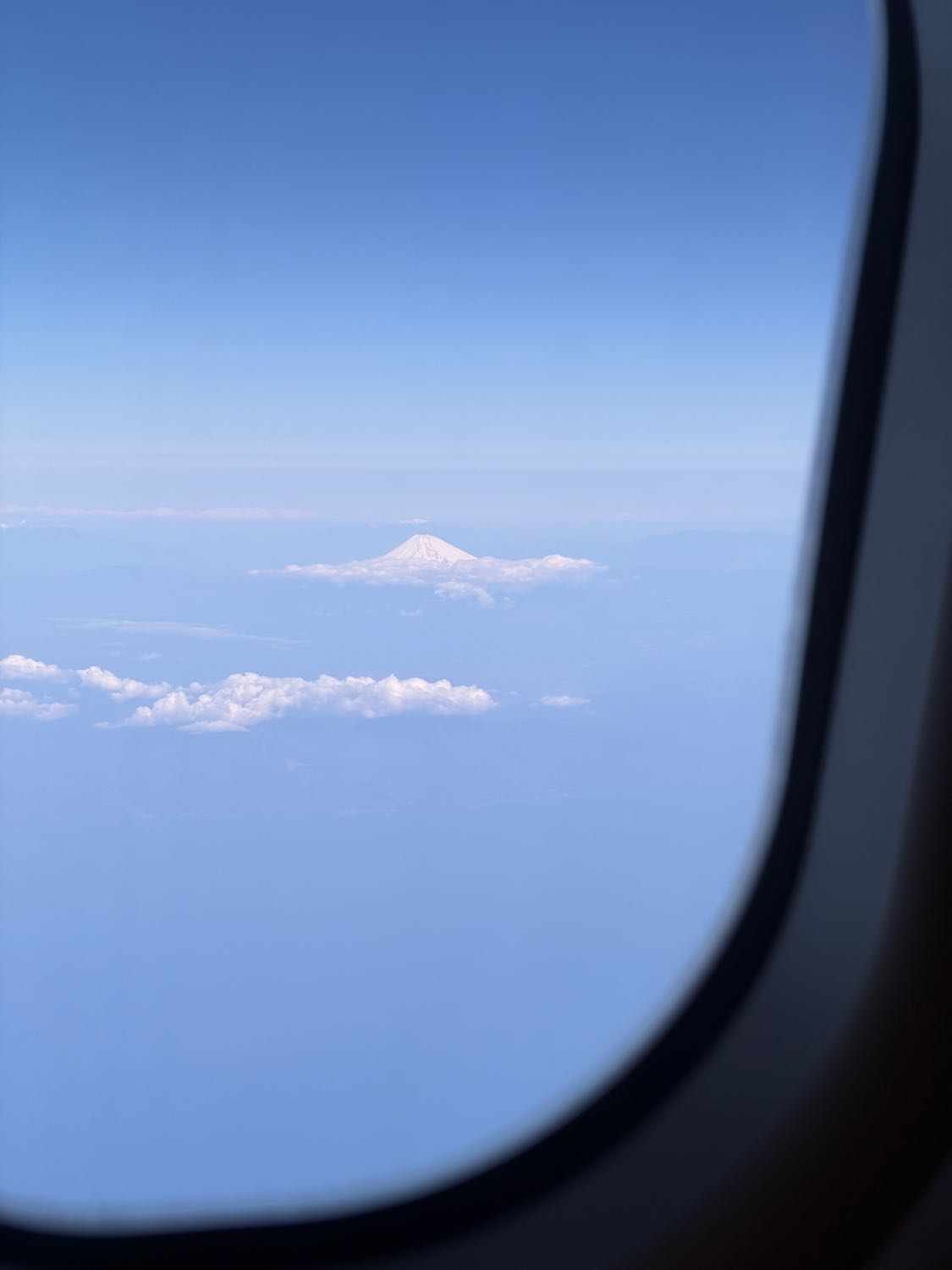 ใกล้ถึงแล้ว มองเห็นฟูจิจากเครื่องบิน ไกลๆ ตรงนั้นเอง ... ดังนั้น ขาไปก็ให้นั่งข้างซ้ายของเครื่องบินนะครับ มีโอกาสเจอฟูจิ