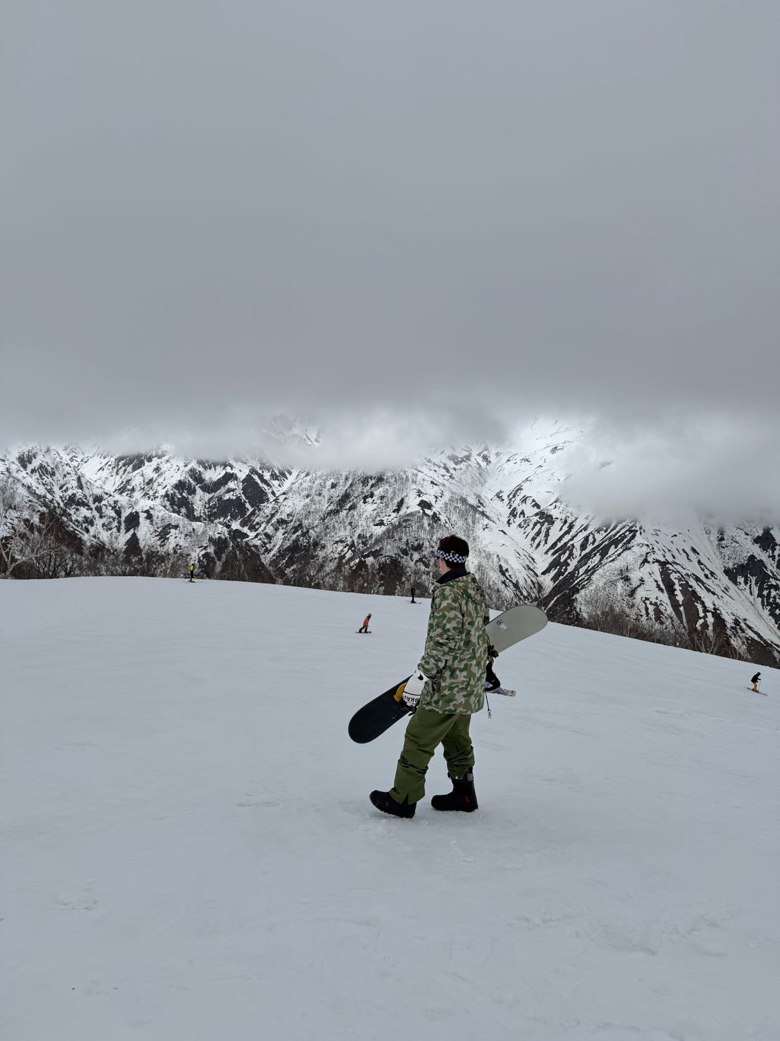 วันนี้คือตรวจสอบสภาพอากาศ ไม่ดีเลย มีเมฆเยอะและฝน ทำให้แพลนว่าจะไปที่ Iwatake เพื่อนั่งชิงช้าชมวิวเทือกเขาแอลป์เปลี่ยน ถ้าฝืนตัวเองขึ้นไปก็ไม่เจอวิว ดังนั้นจึงหากิจกรรมทำไปก่อน เลยตัดสินใจเช่า Snowboard และขึ้นไปเล่นด้านบน Goryu เพราะเจ้าหน้าที่แนะนำว่าด้านลน เหนือเมฆ อากาศจะดีกว่าอยู่ด้านล่าง ฝนตกทั้งวันแน่ๆถ้าอยู่ด้านล่าง เลยต้องนั่งกระเช้าขึ้นไปที่ด้านบน