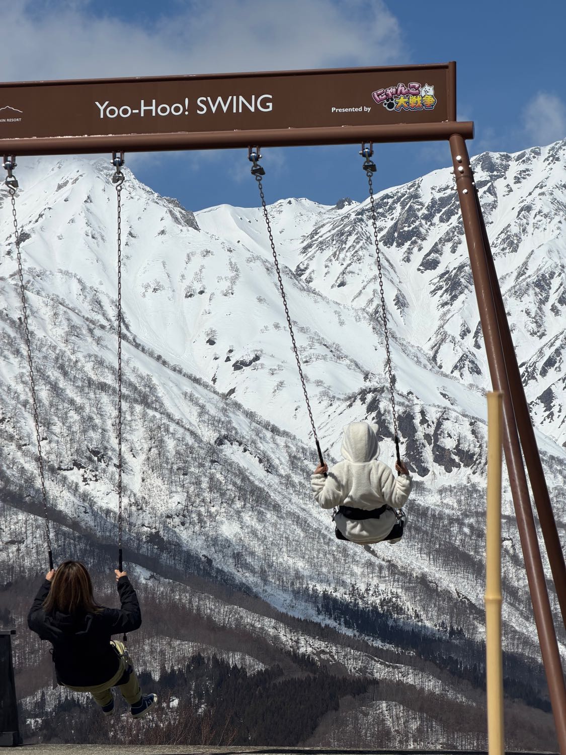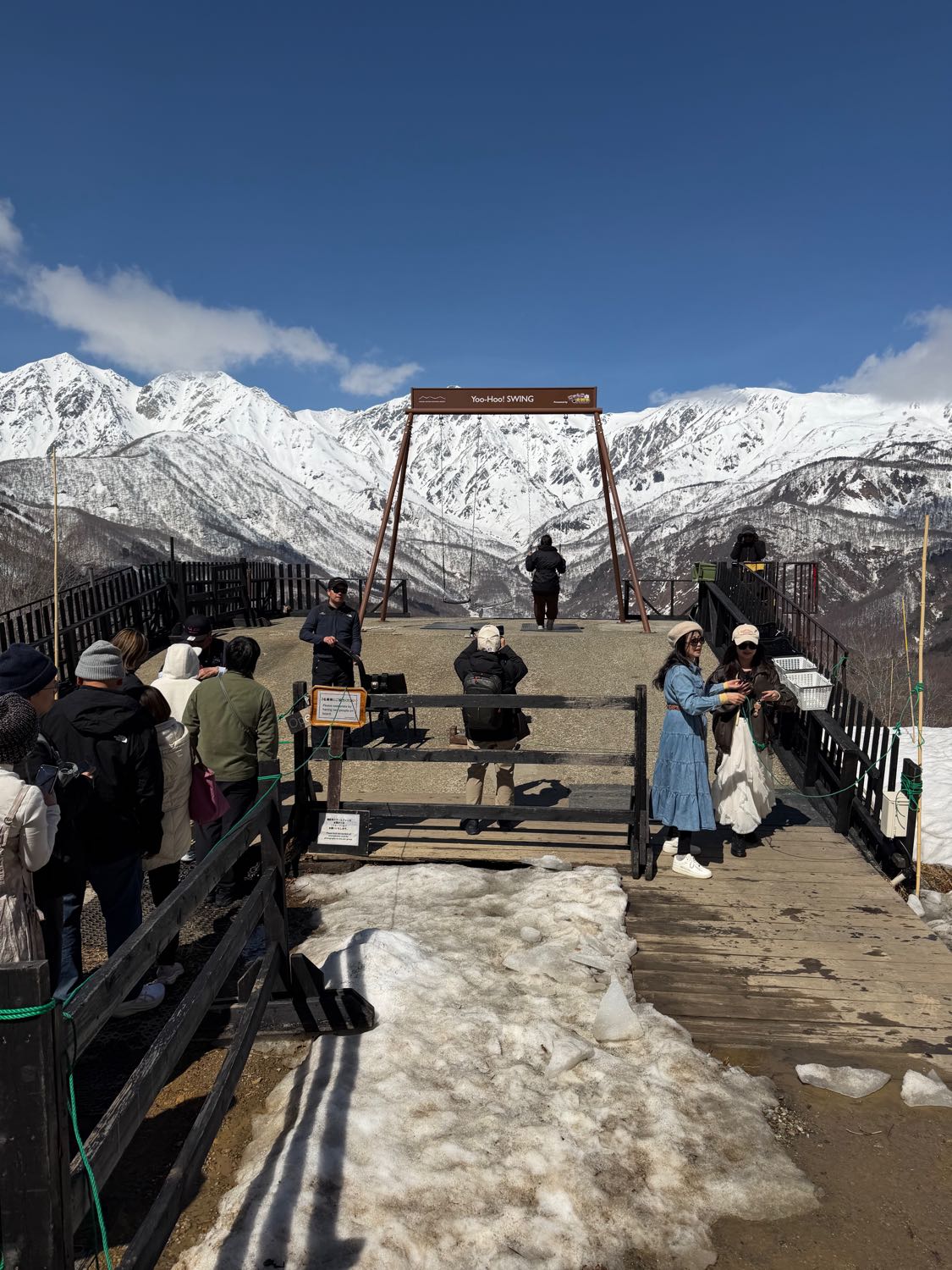 พลาดไม่ได้ สำหรับชิงช้า วิวหลักล้านที่ Iwatake Hakuba ค่านั่ง 500 เยน ฟังเพลงไป1 รอบ ก็หมดรอบ คนต่อแถวไม่เยอะครับ รอได้สบายมาก